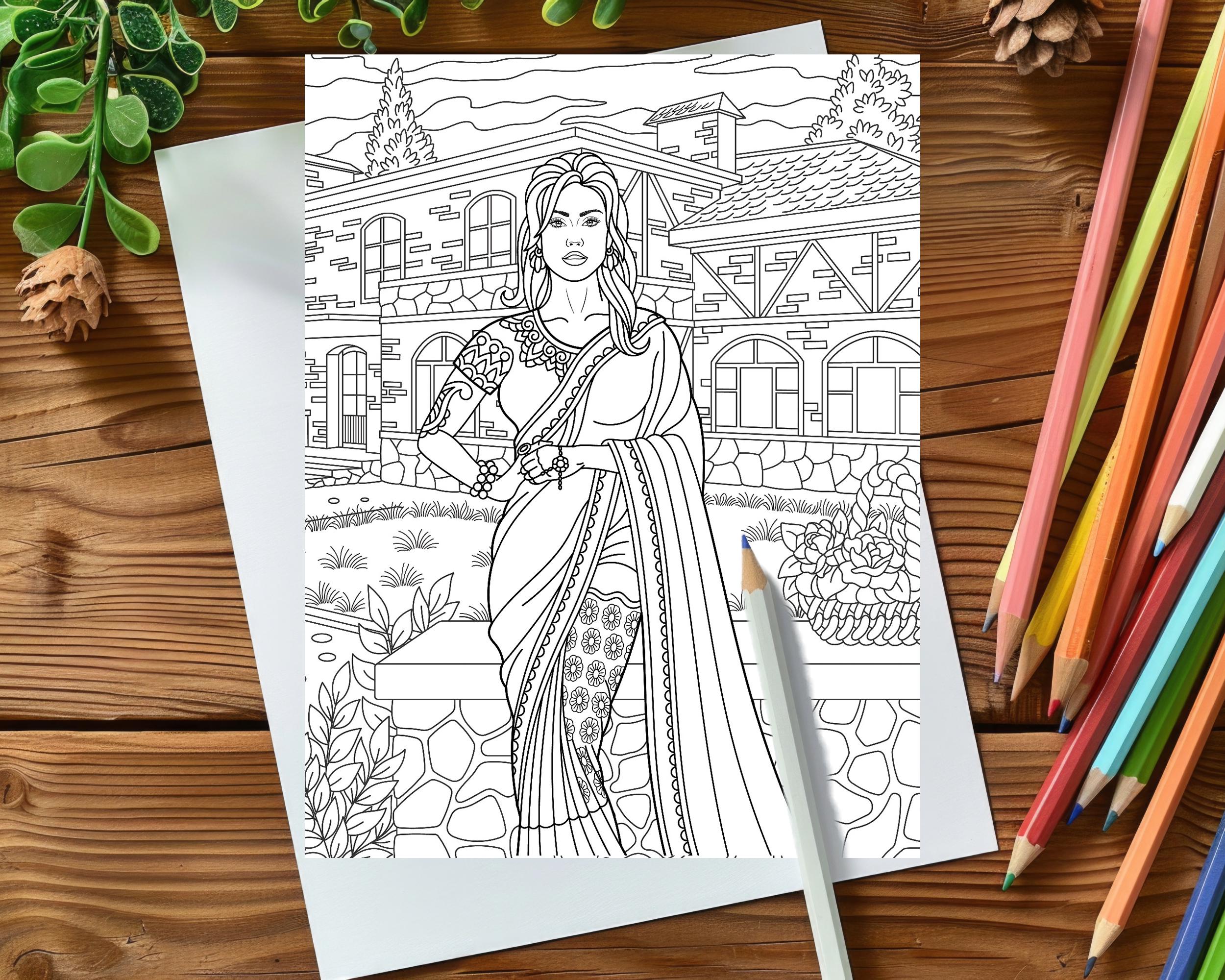 Diversity Colouring Pages – Girls in Traditional Dress | Multicultural PDF Download (5 Pages)
