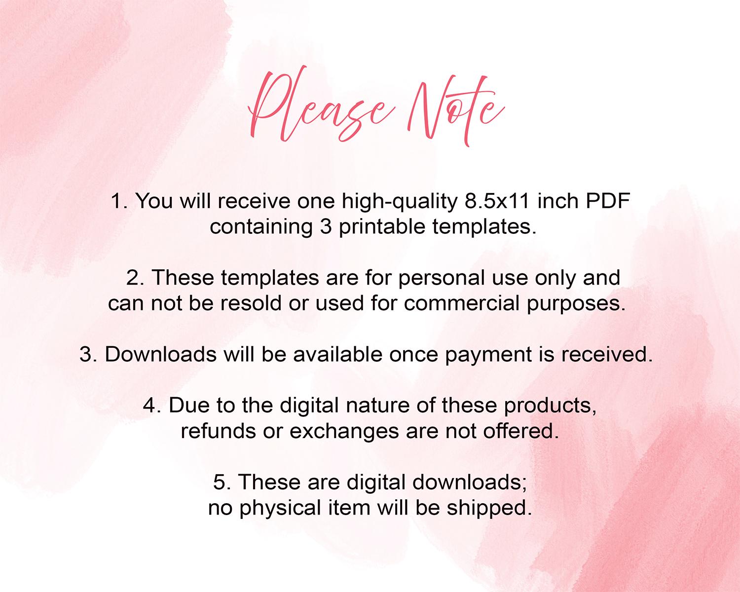✔ 1 high-quality 8.5x11 in PDF file with 3 chic templates (300 DPI)