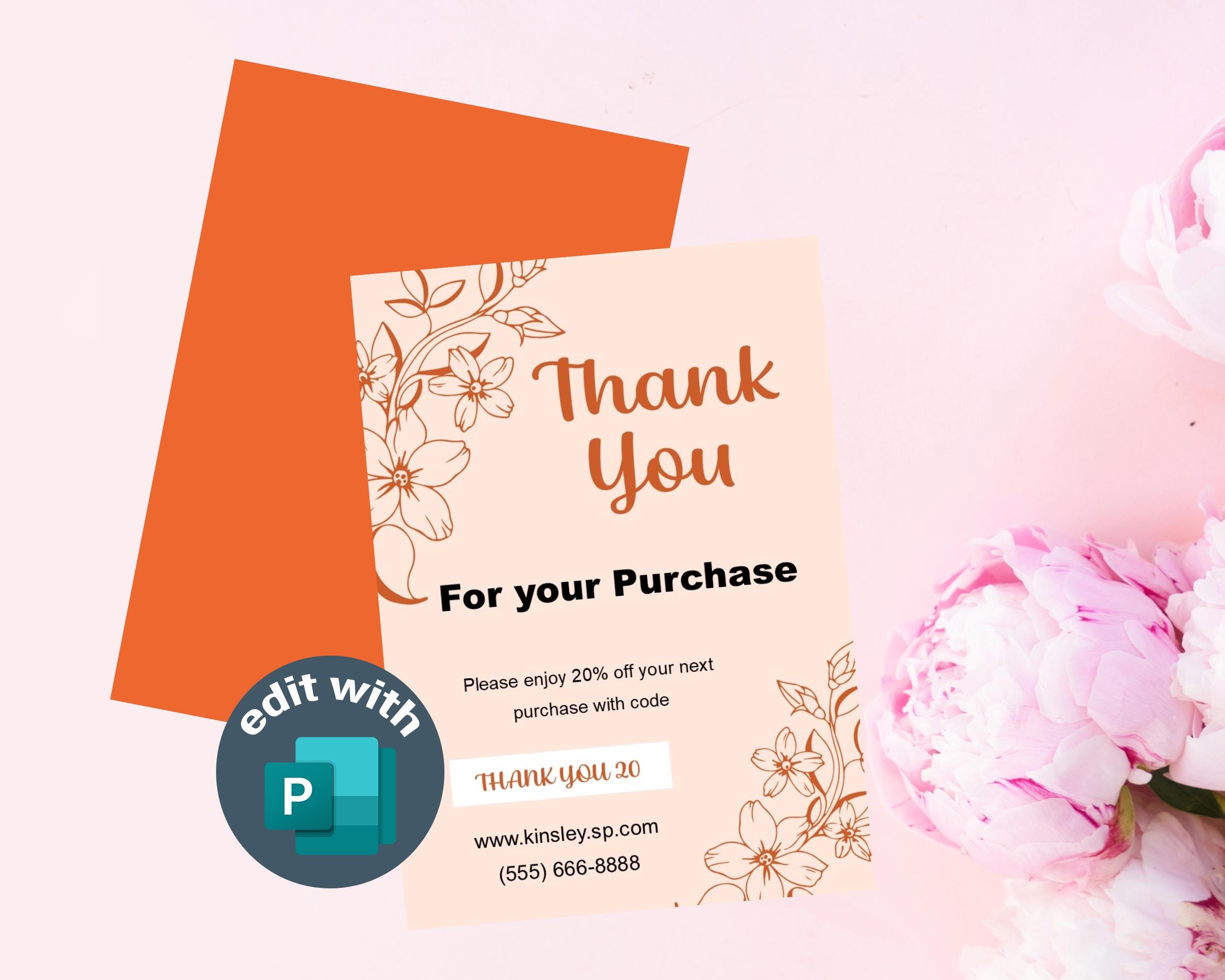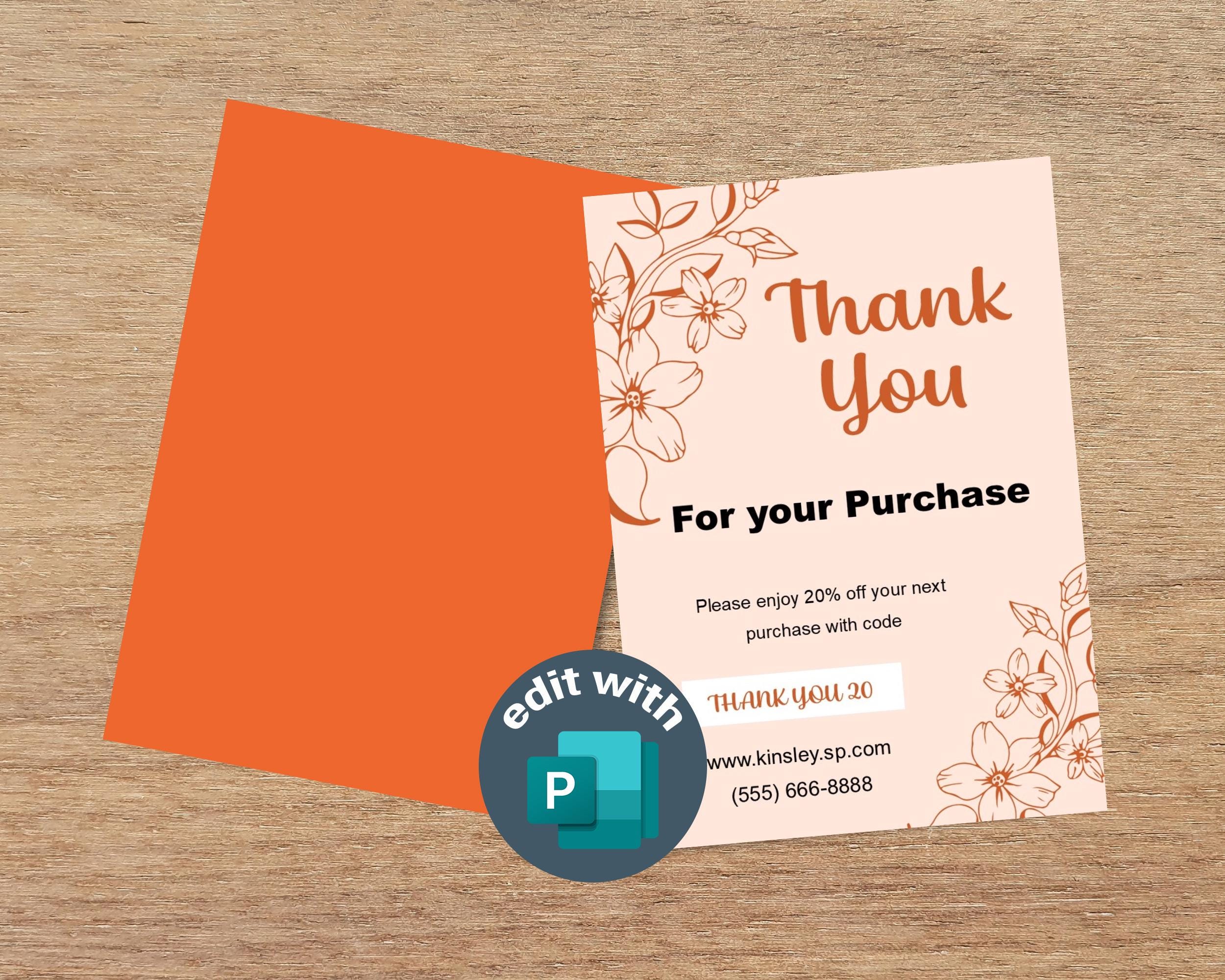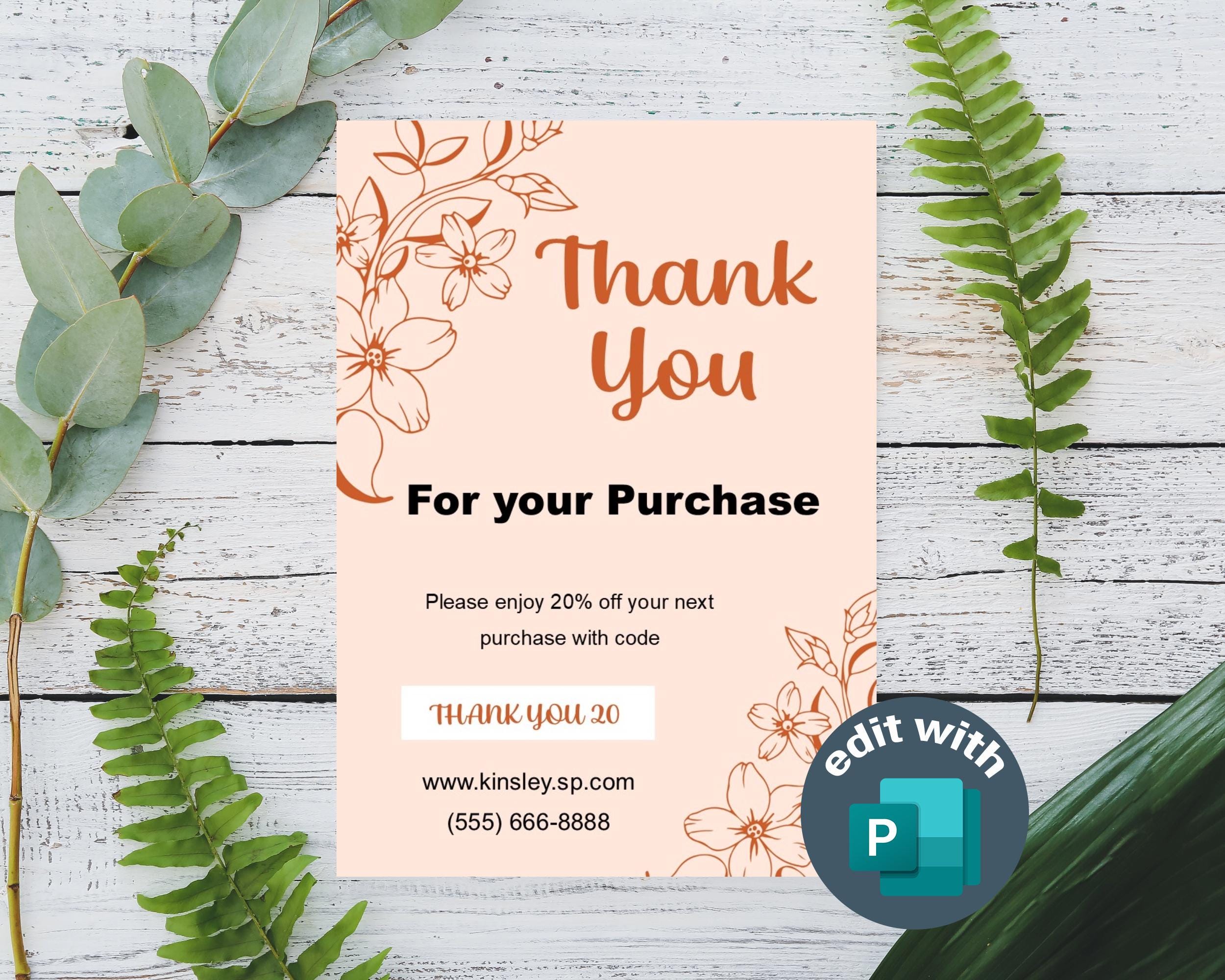 Floral Thank You Card Template – Editable Customer Appreciation, Business, Personal Use (Microsoft Publisher)