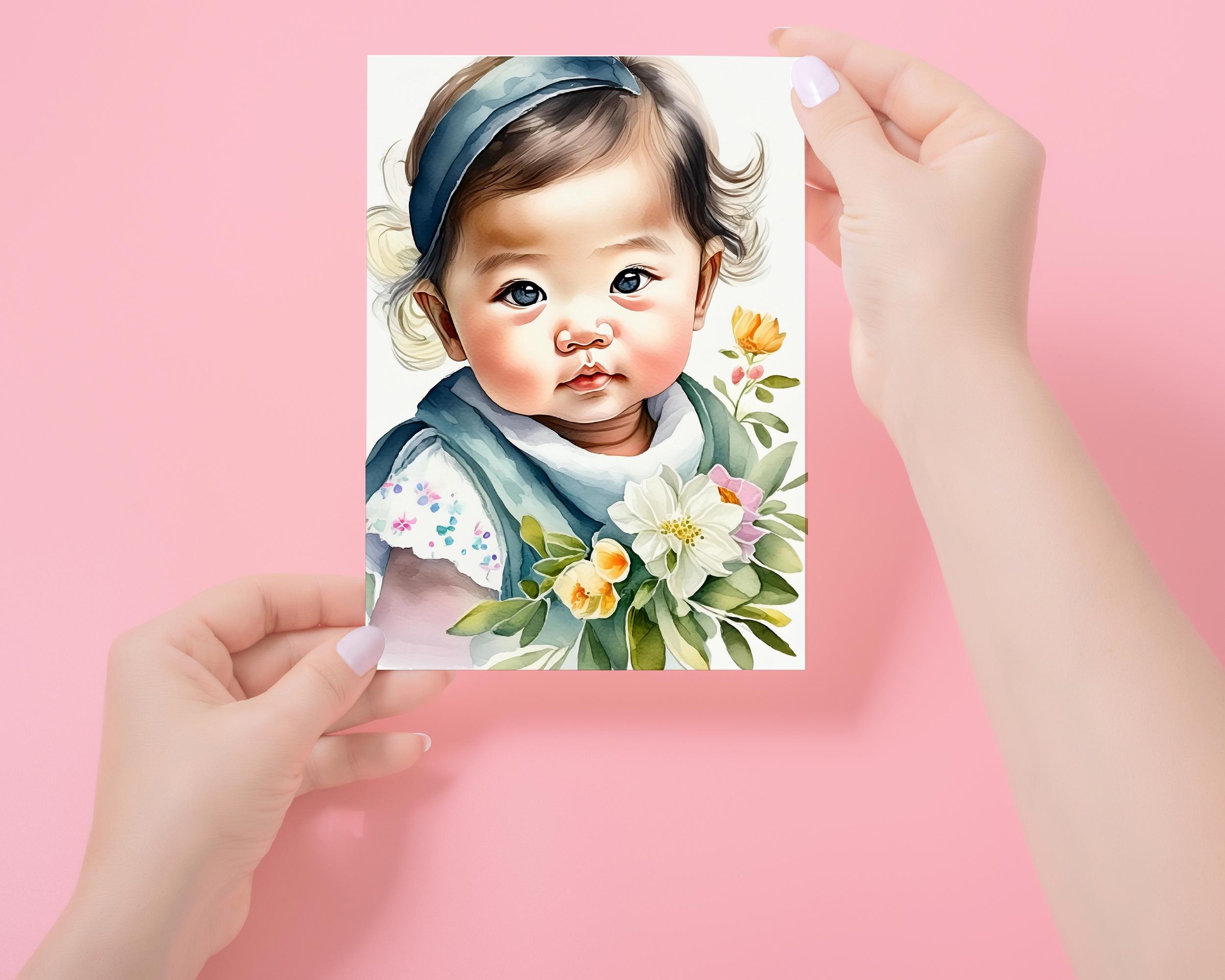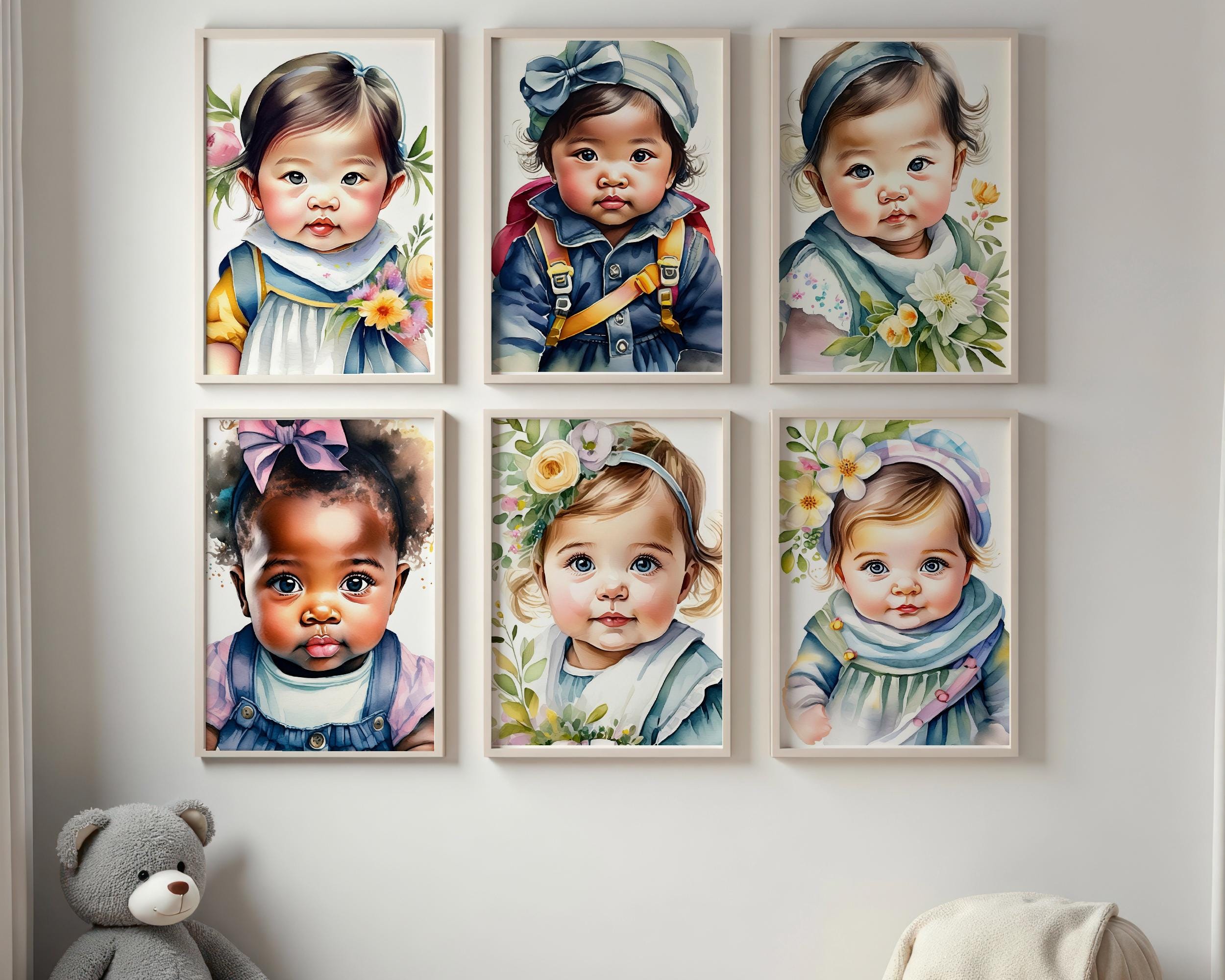 Celebrate the beauty of new beginnings with this Watercolour Baby Girl Art Print Collection. Each portrait features soft watercolor details and tender expressions, perfect for nursery walls, keepsakes, baby announcements, or creative projects.