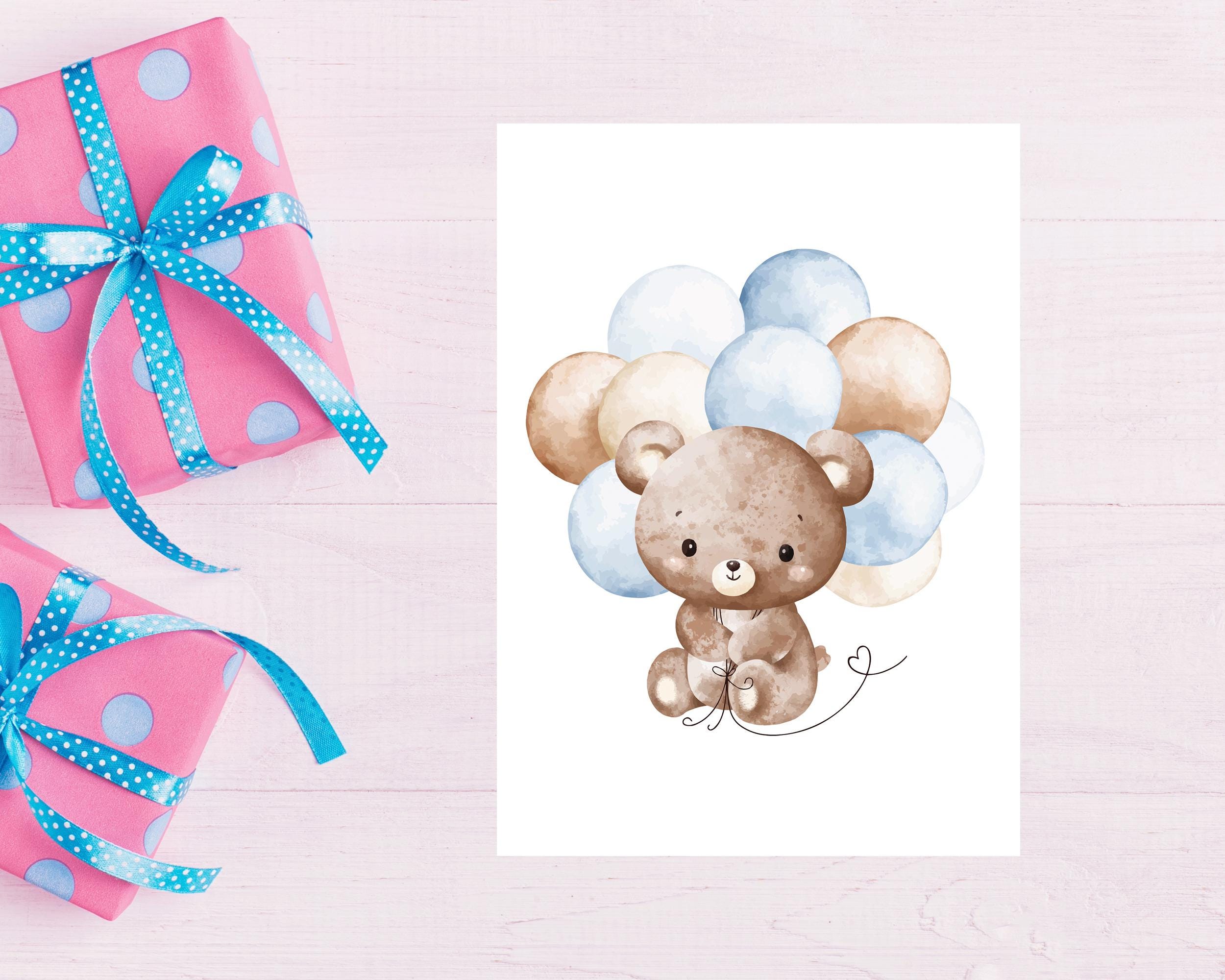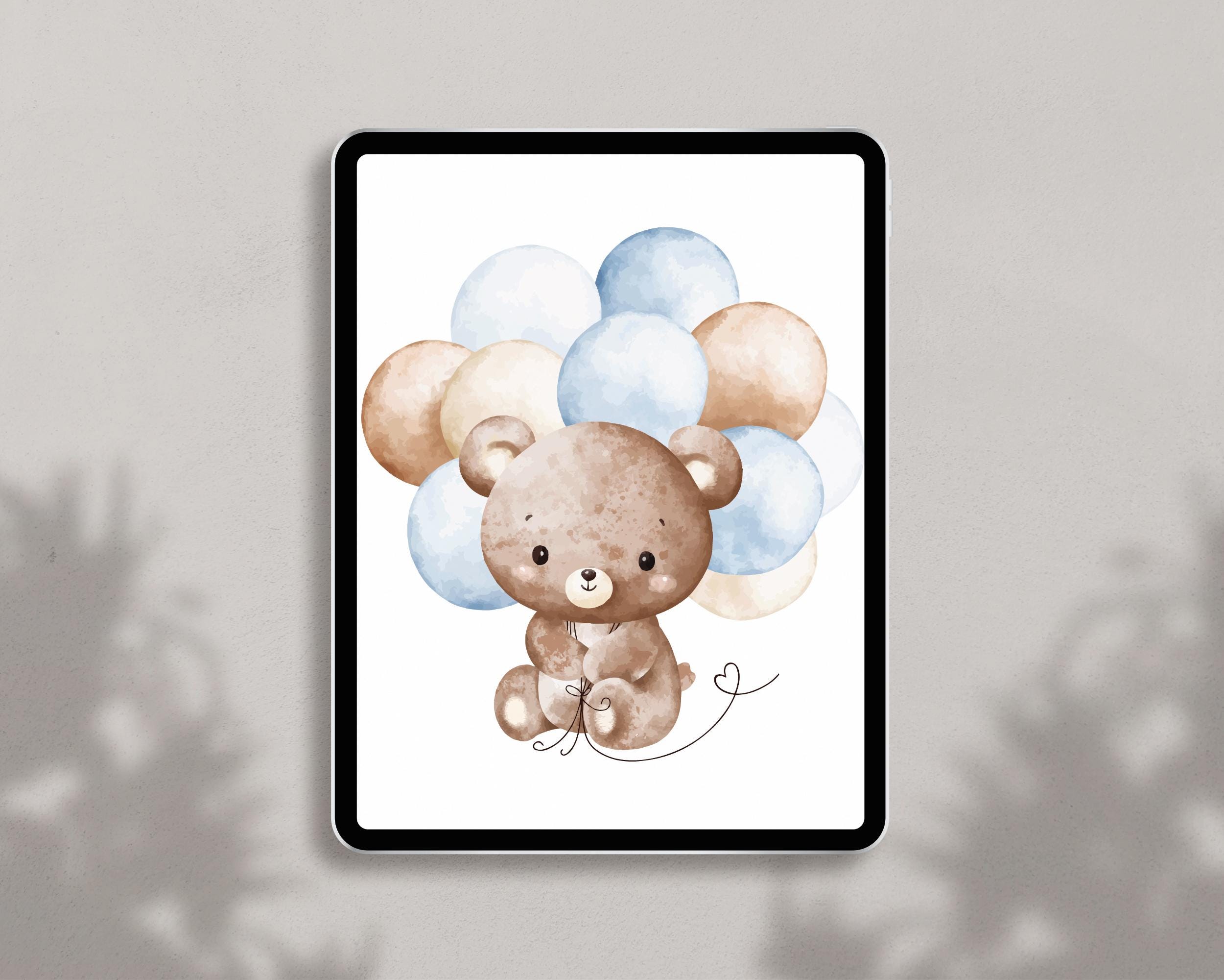 Add a touch of whimsy to your nursery or kids’ room with this adorable Watercolor Teddy Bear Print featuring blue balloons. This high-quality digital download makes a perfect baby shower gift, children’s room décor, or gender-neutral wall art.