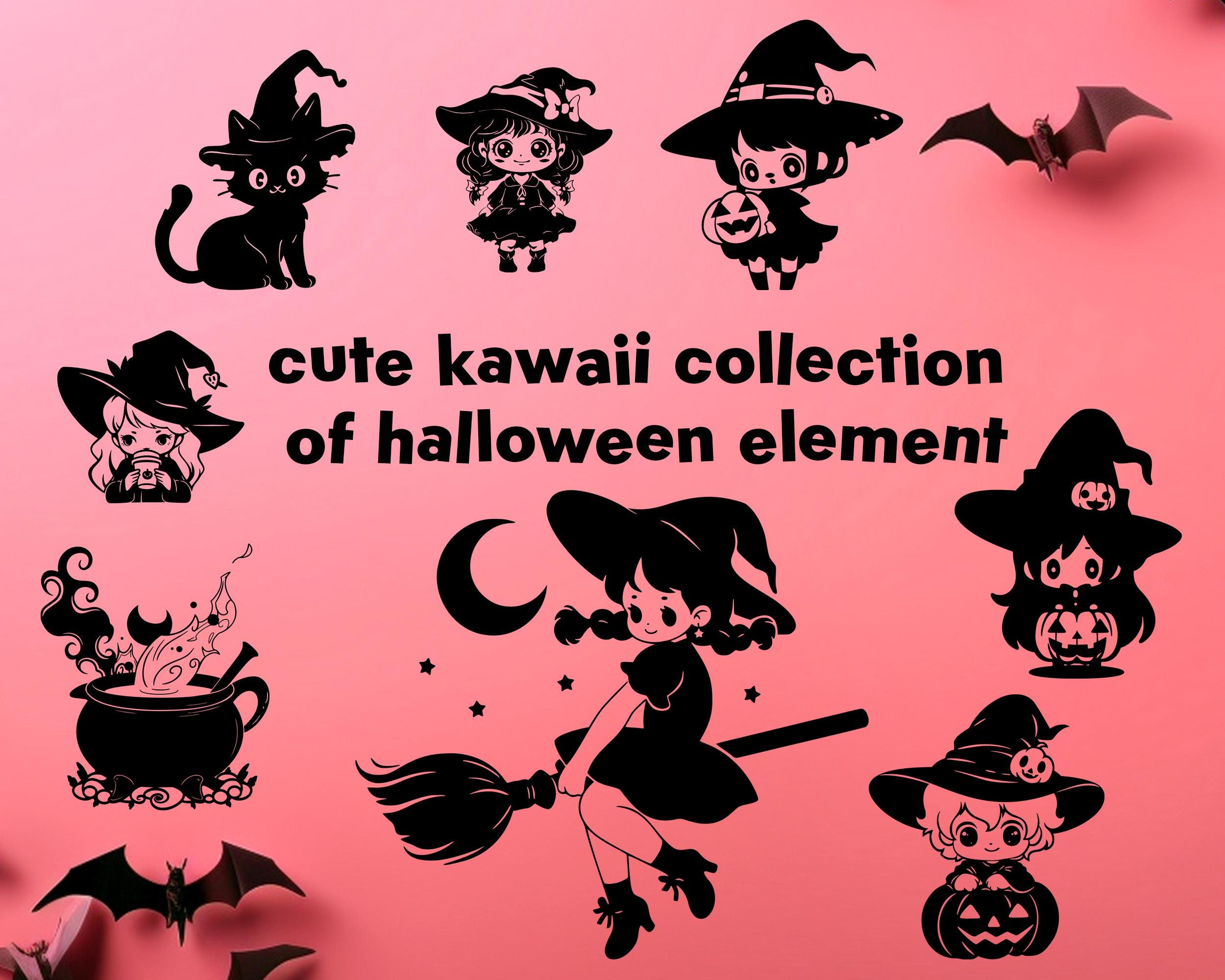 Kawaii Halloween Clipart: Spooky Witch, Cat, Pumpkin (SVG & PNG)