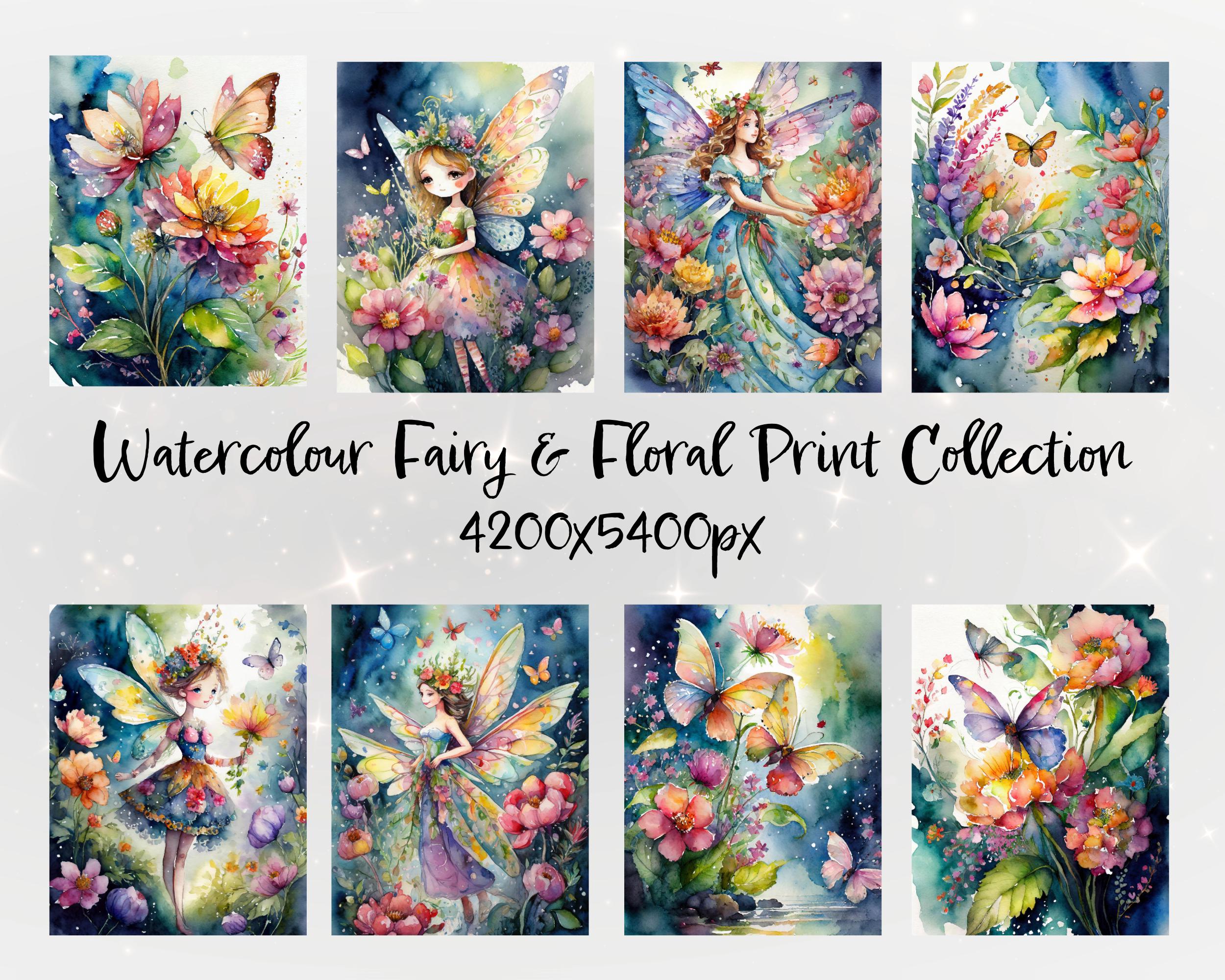 Watercolour Fairy & Floral Print Collection | AI Fantasy Digital Art | Whimsical Fairy Clipart (PDF Download)