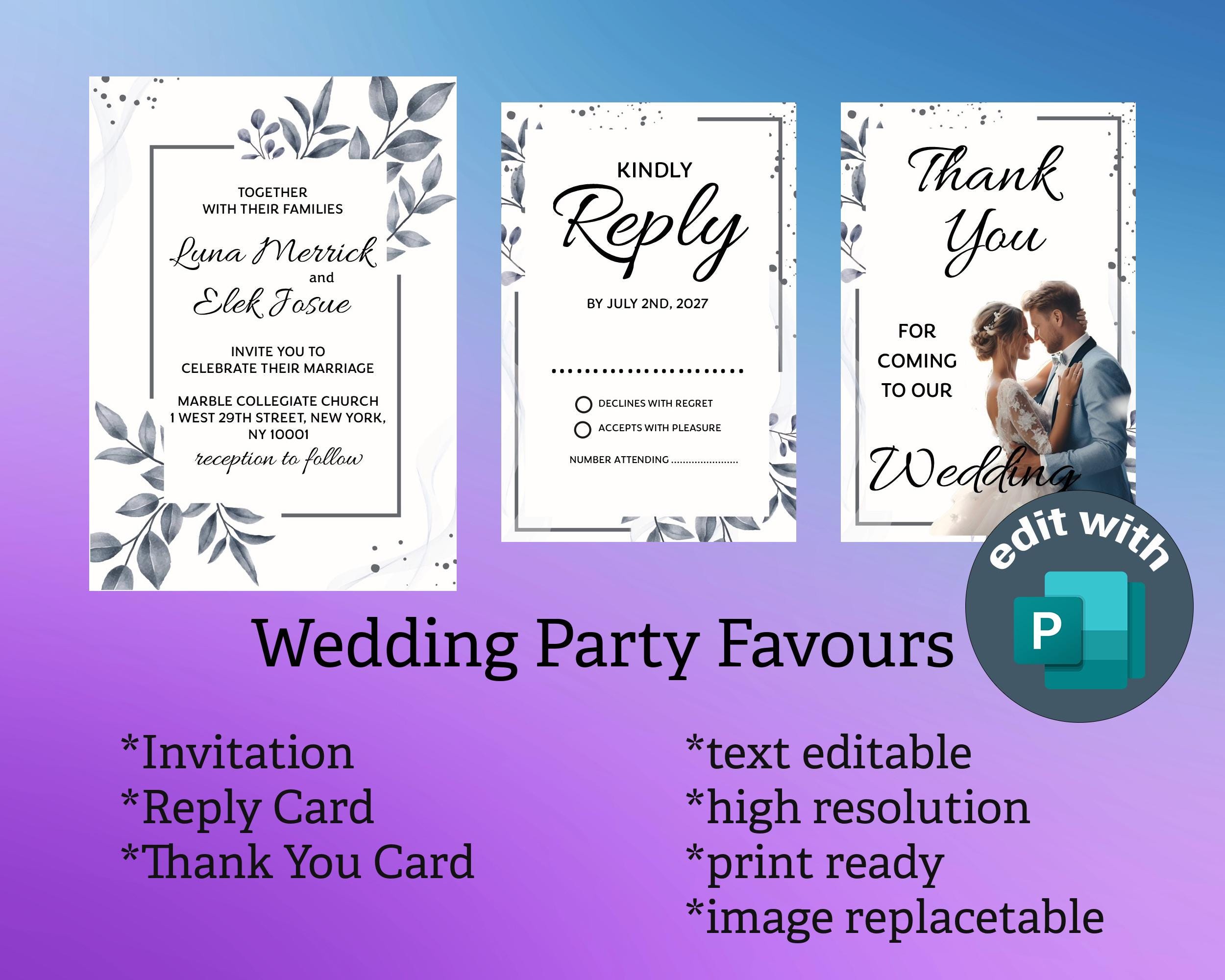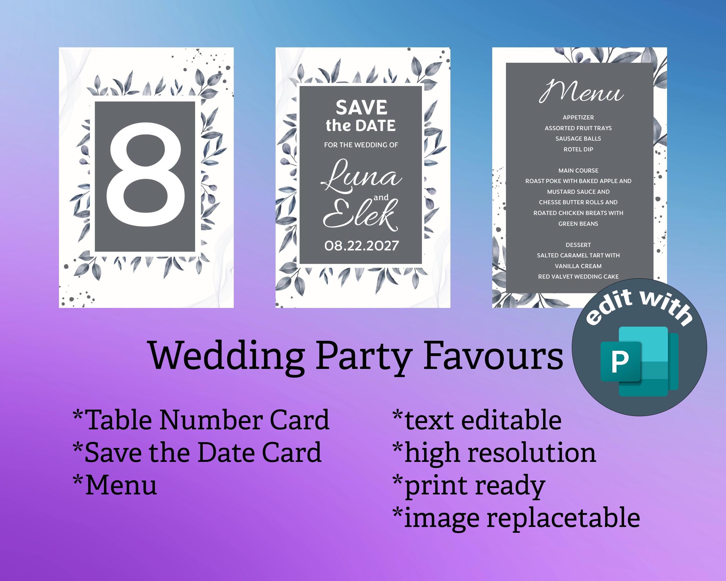 Elegant Grey Leaf Wedding Favor Kit: Editable Printable Templates (Digital Download)