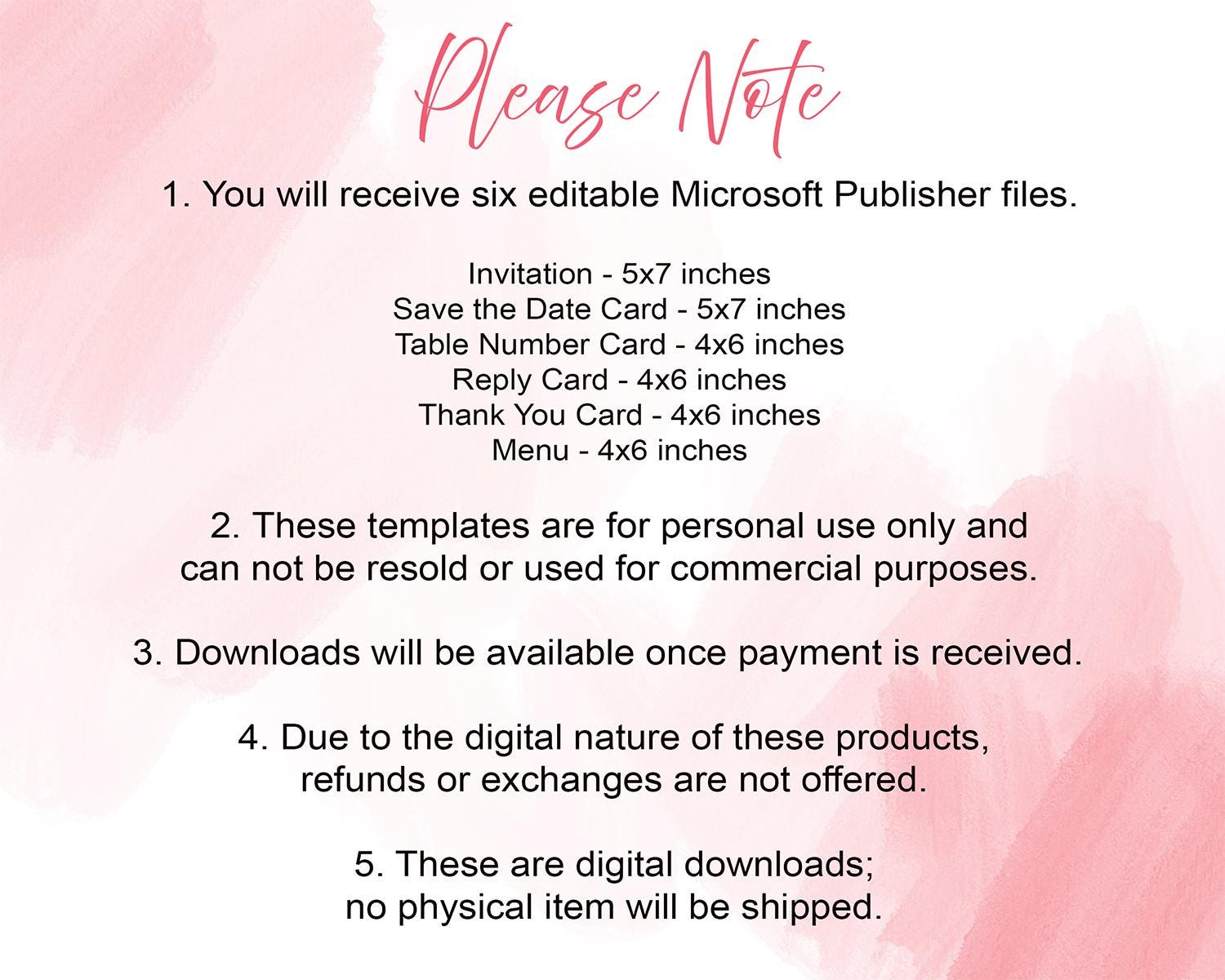• 1 zip folder containing 6 editable Microsoft Publisher files: