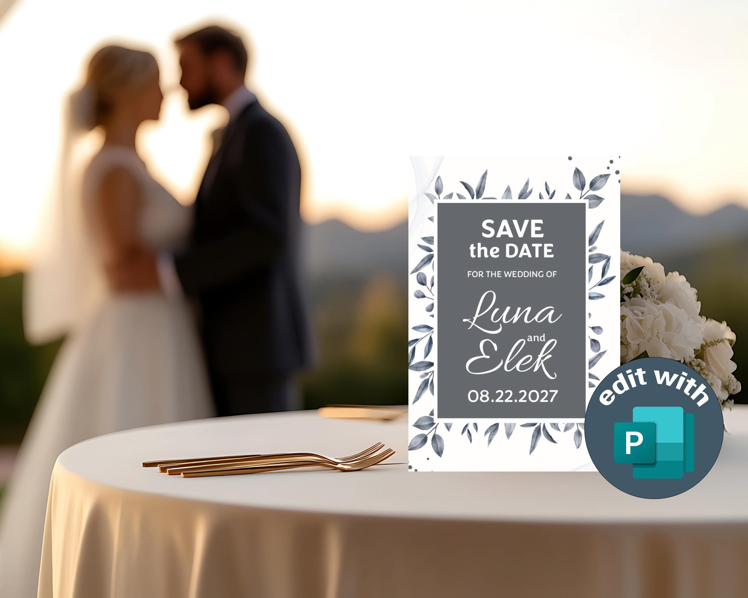 Create unforgettable wedding favours with this editable grey leaf wedding favour kit. Instantly download and customize printable favor tags, stickers, and labels to match your modern minimalist wedding theme.