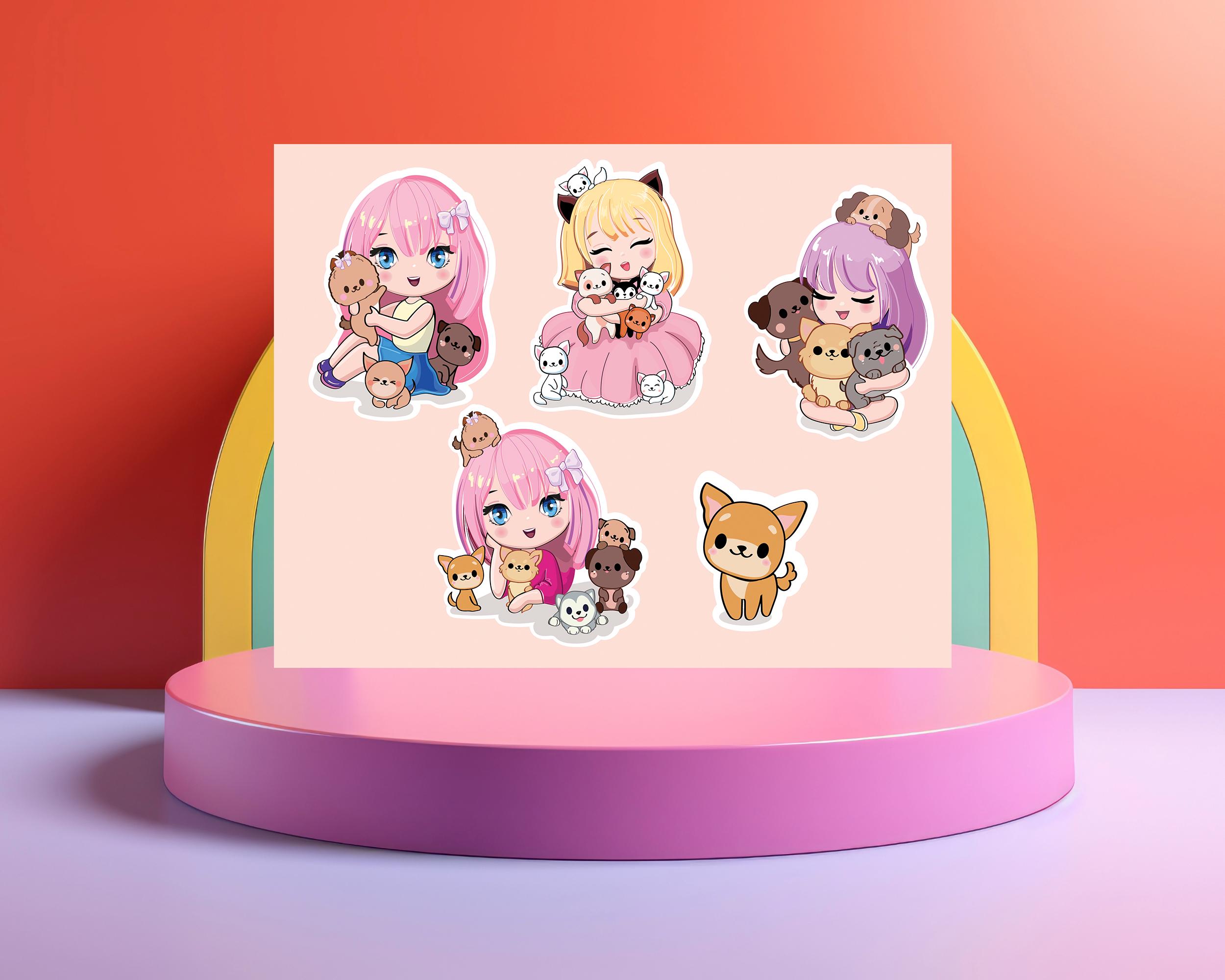 Kawaii Anime Girl & Pet Stickers: Pastel Printable Sheet (Digital Download)