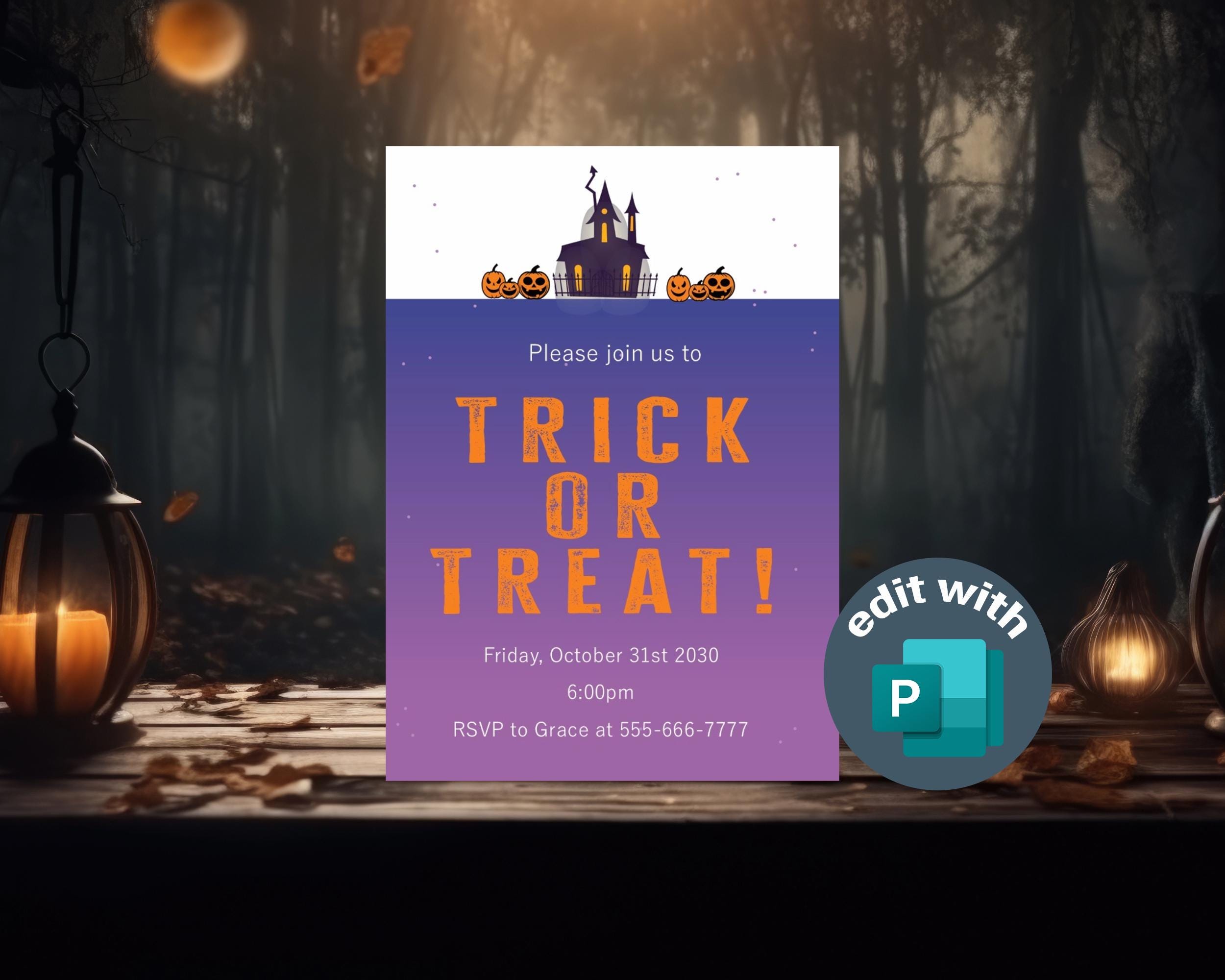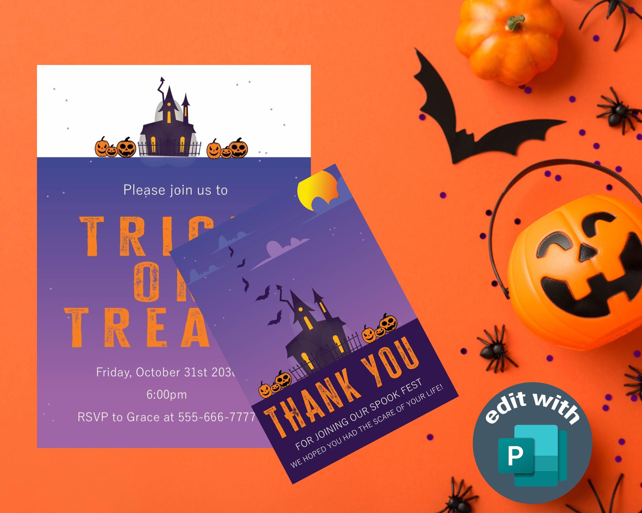 Halloween Trick or Treat Invitation & Thank You Card Set (Digital Download)