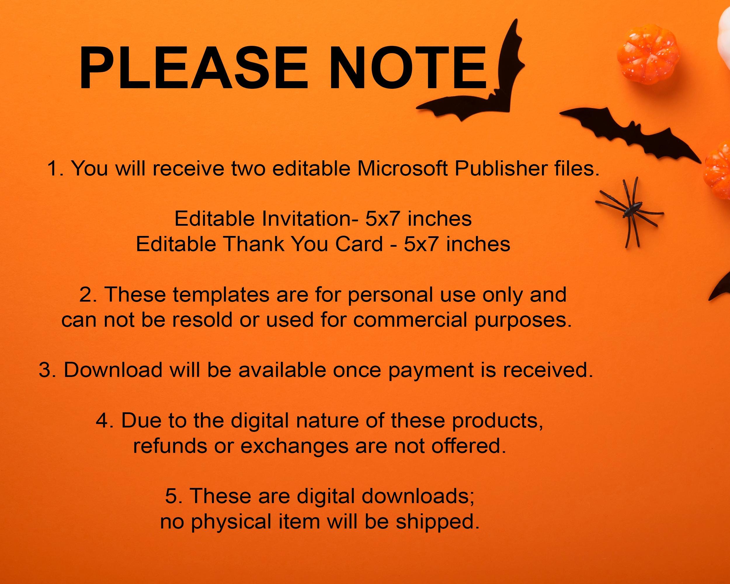 Celebrate Halloween in style with this editable Trick or Treat Invitation and matching Thank You Card set! Perfect for spooky parties, kids’ school events, or family gatherings, this digital download makes it easy to customize, print, and share festive cheer.