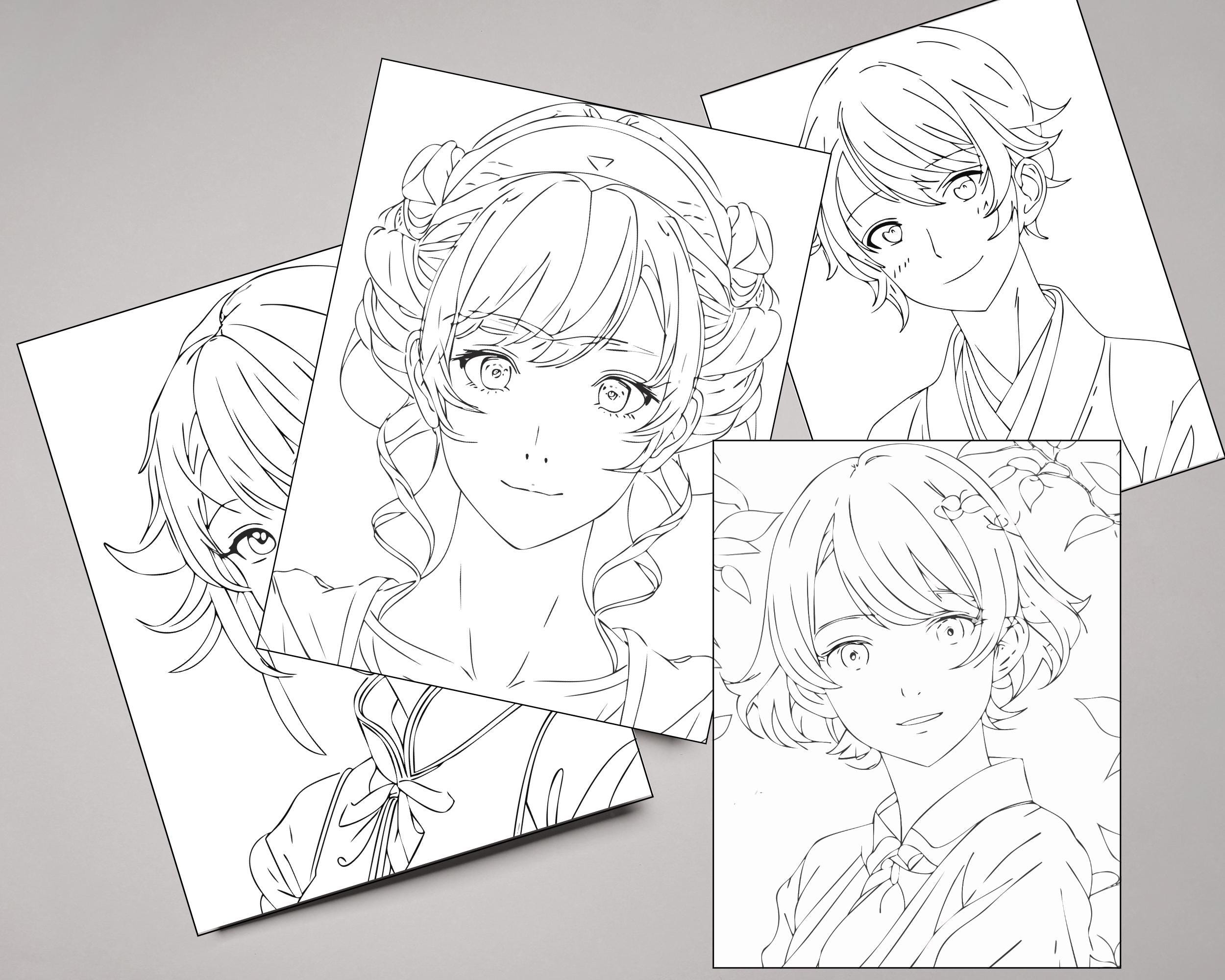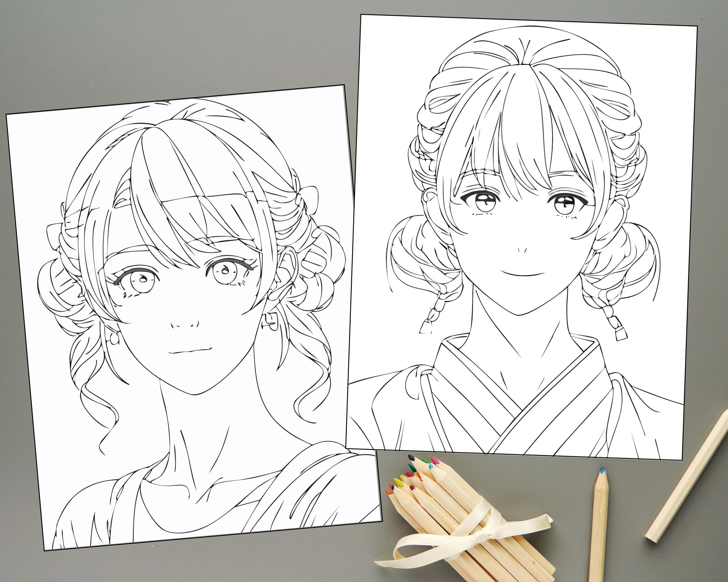 Anime Girl Colouring Pages: 8 Japan-Style Manga Faces (PDF)