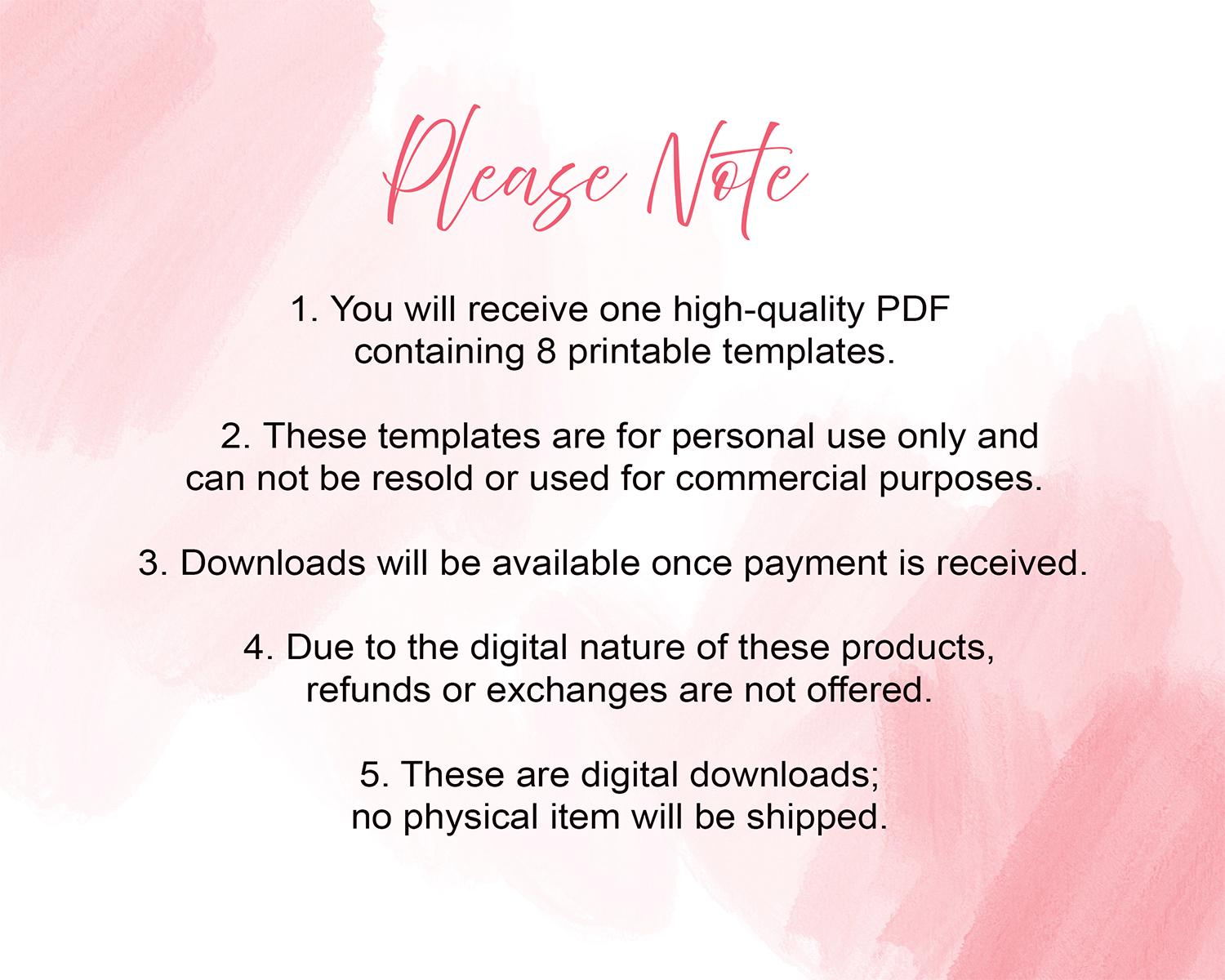 Since this is a DIGITAL DOWNLOAD item, you won't receive any physical products. Your digital file will be immediately available to download after purchasing.