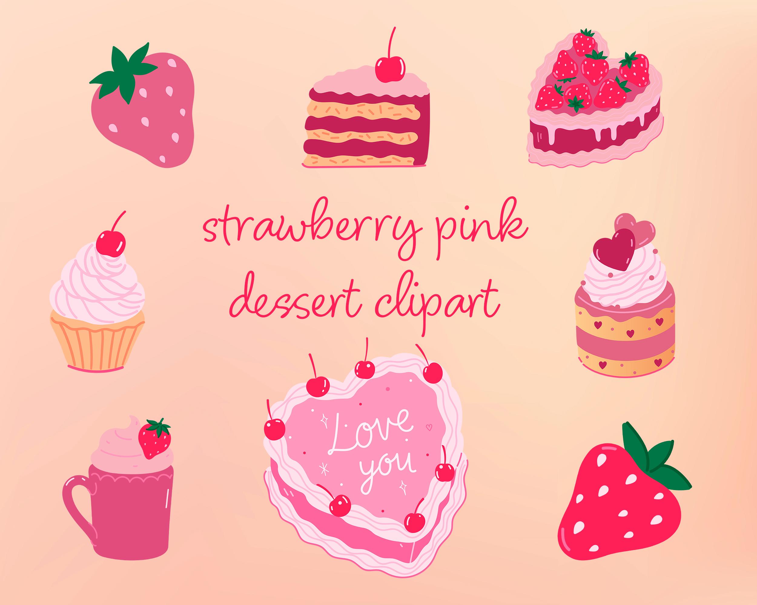 Strawberry Dessert Clipart: Pink Cake & Cupcake Illustrations (PNG, SVG Digital Download)