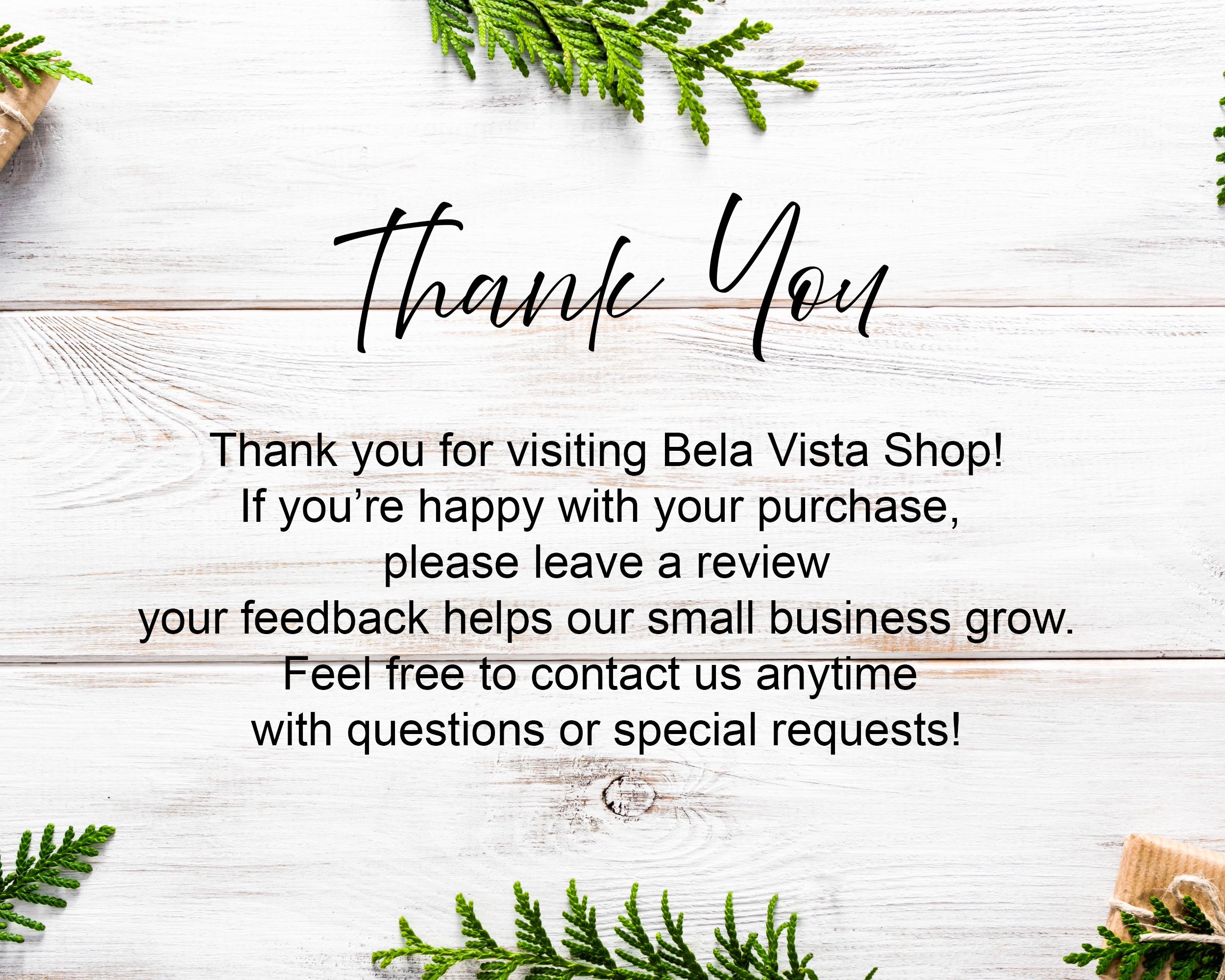 • For custom requests, visit www.belavistashop.com