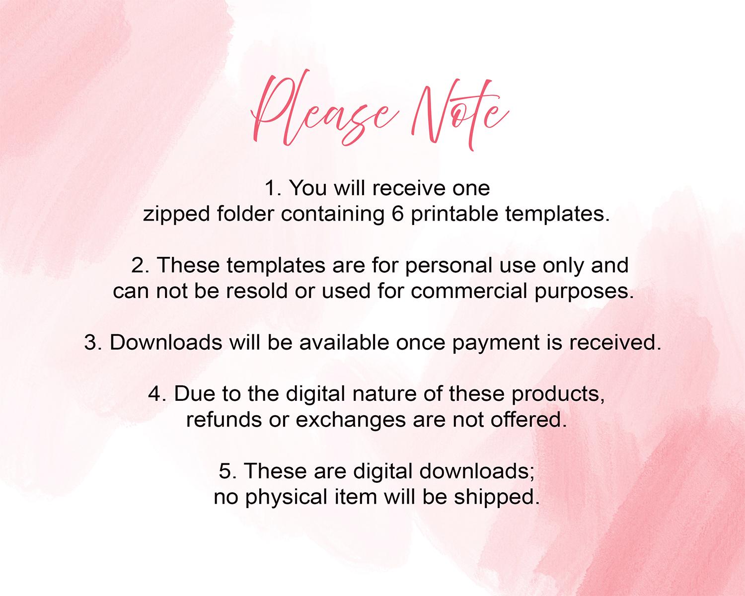 Since this is a DIGITAL DOWNLOAD item, you won't receive any physical products. Your digital file will be immediately available to download after purchasing.