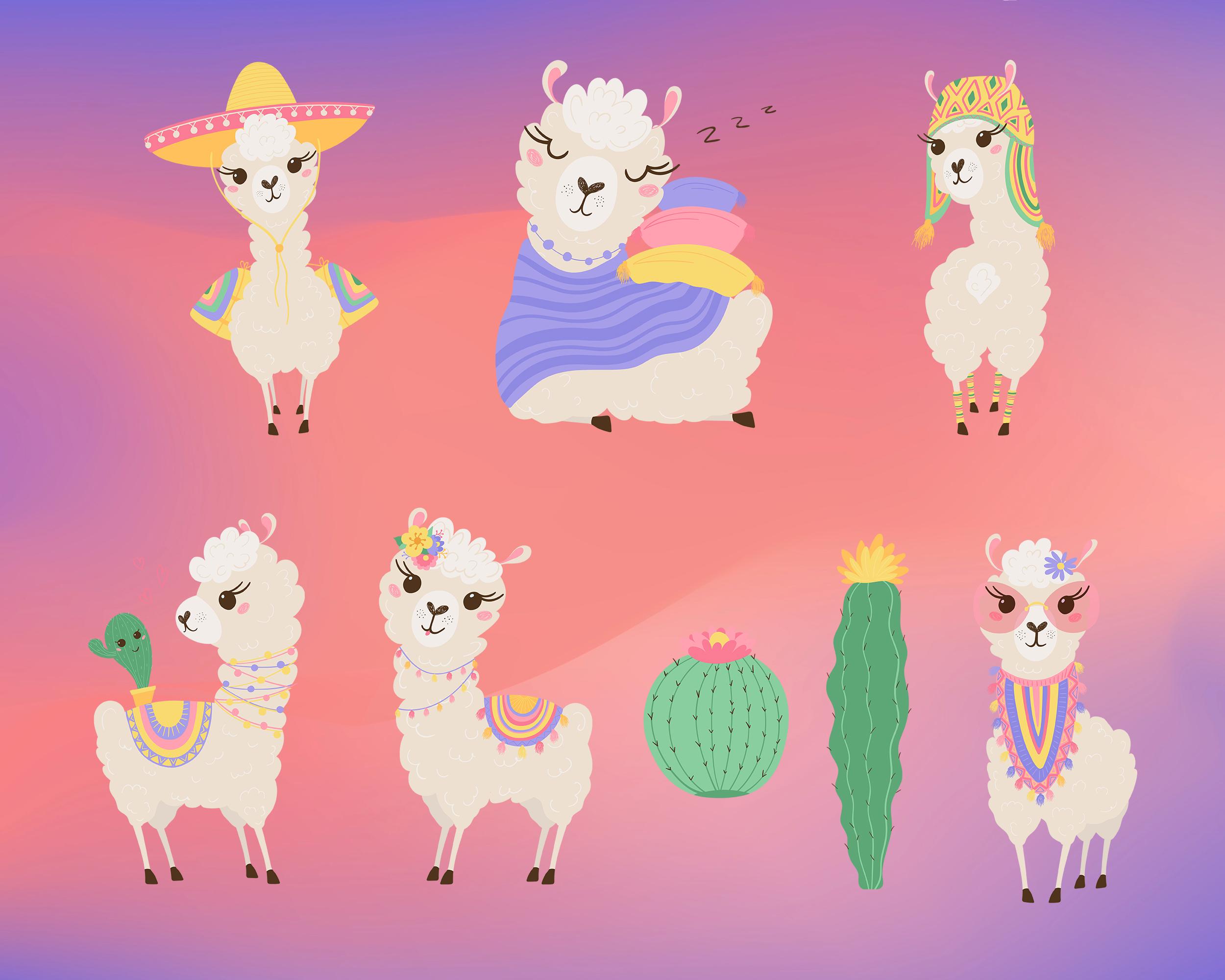 Pastel Llama & Cactus Clipart Bundle: Boho Animal Graphics (Digital Download