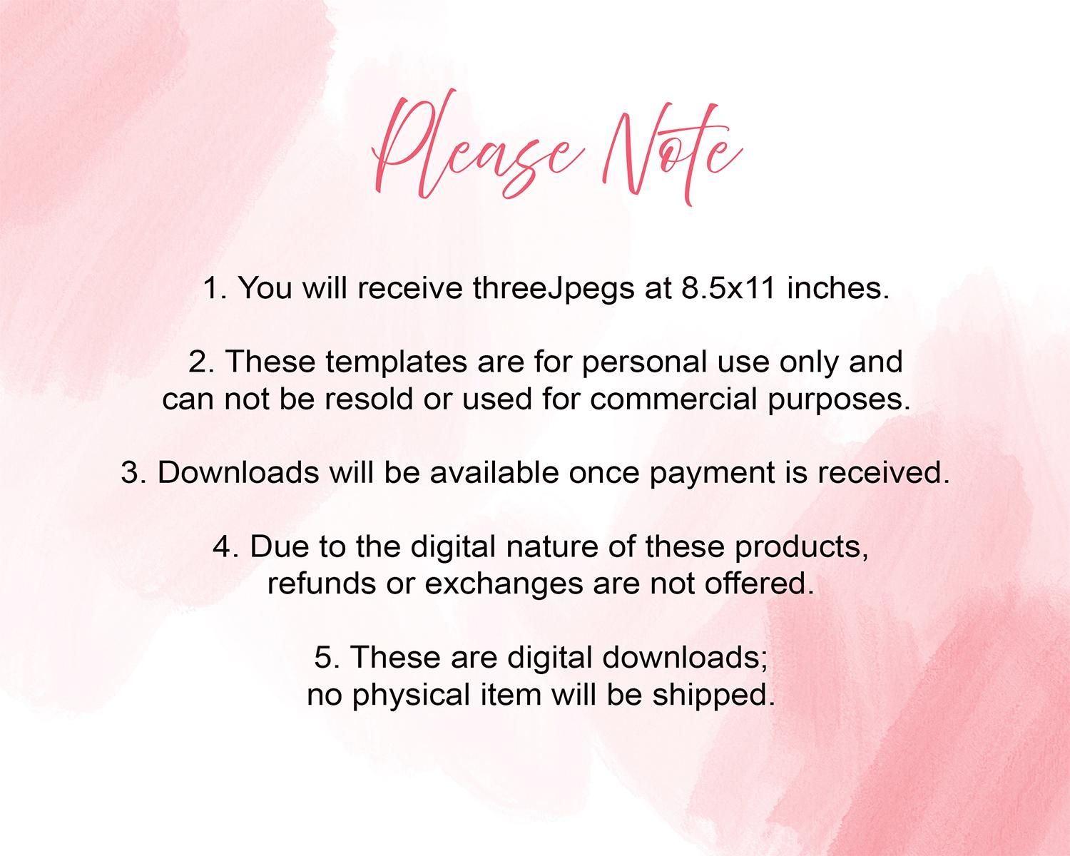 Since this is a DIGITAL DOWNLOAD item, you won't receive any physical products. Your digital file will be immediately available to download after purchasing.