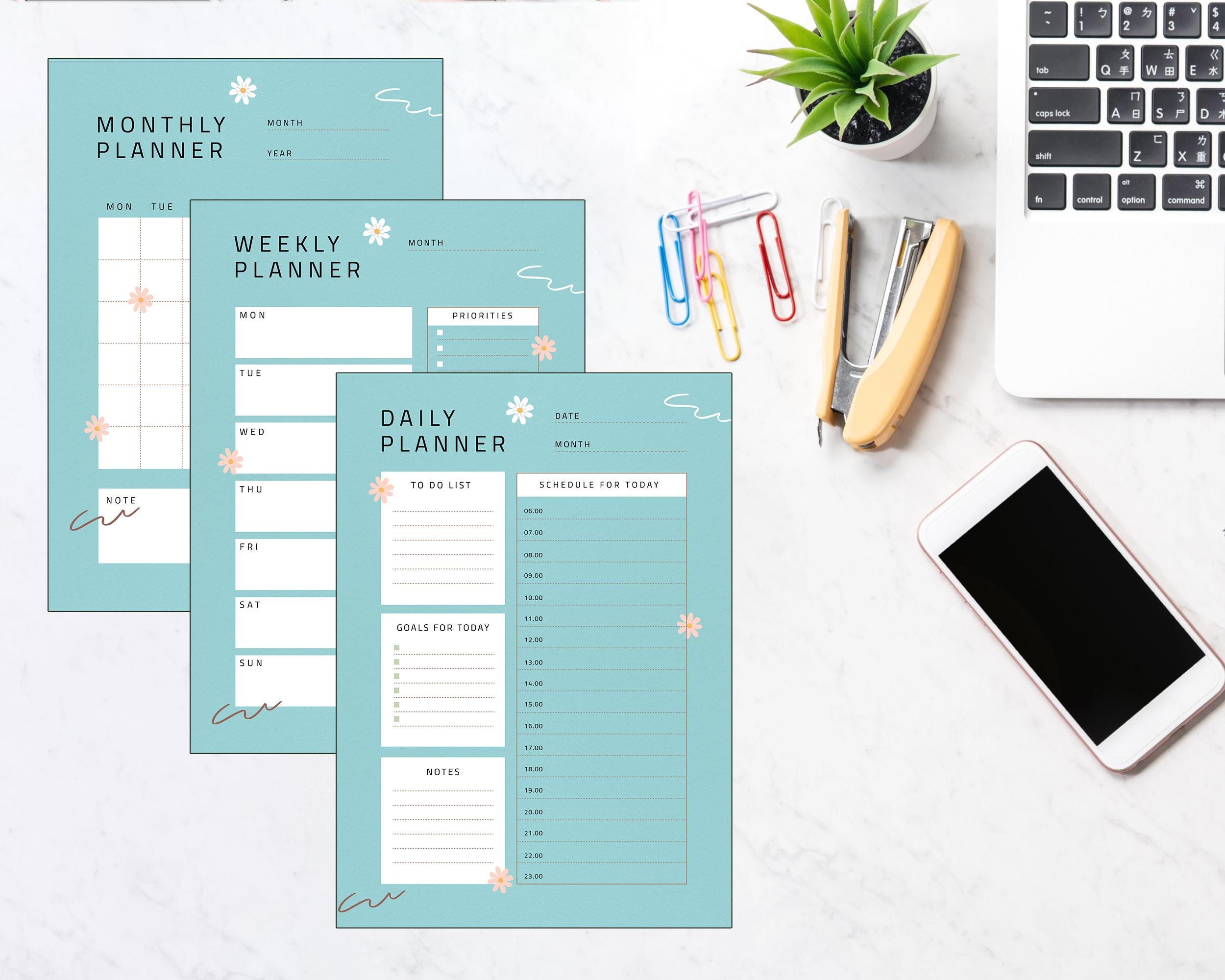 Stay organized in style with this elegant blue floral planner set! Includes daily, weekly, and monthly undated planner pages to boost productivity and focus. Perfect for home, office, school, or personal organization. Print as many pages as you need and start planning today.