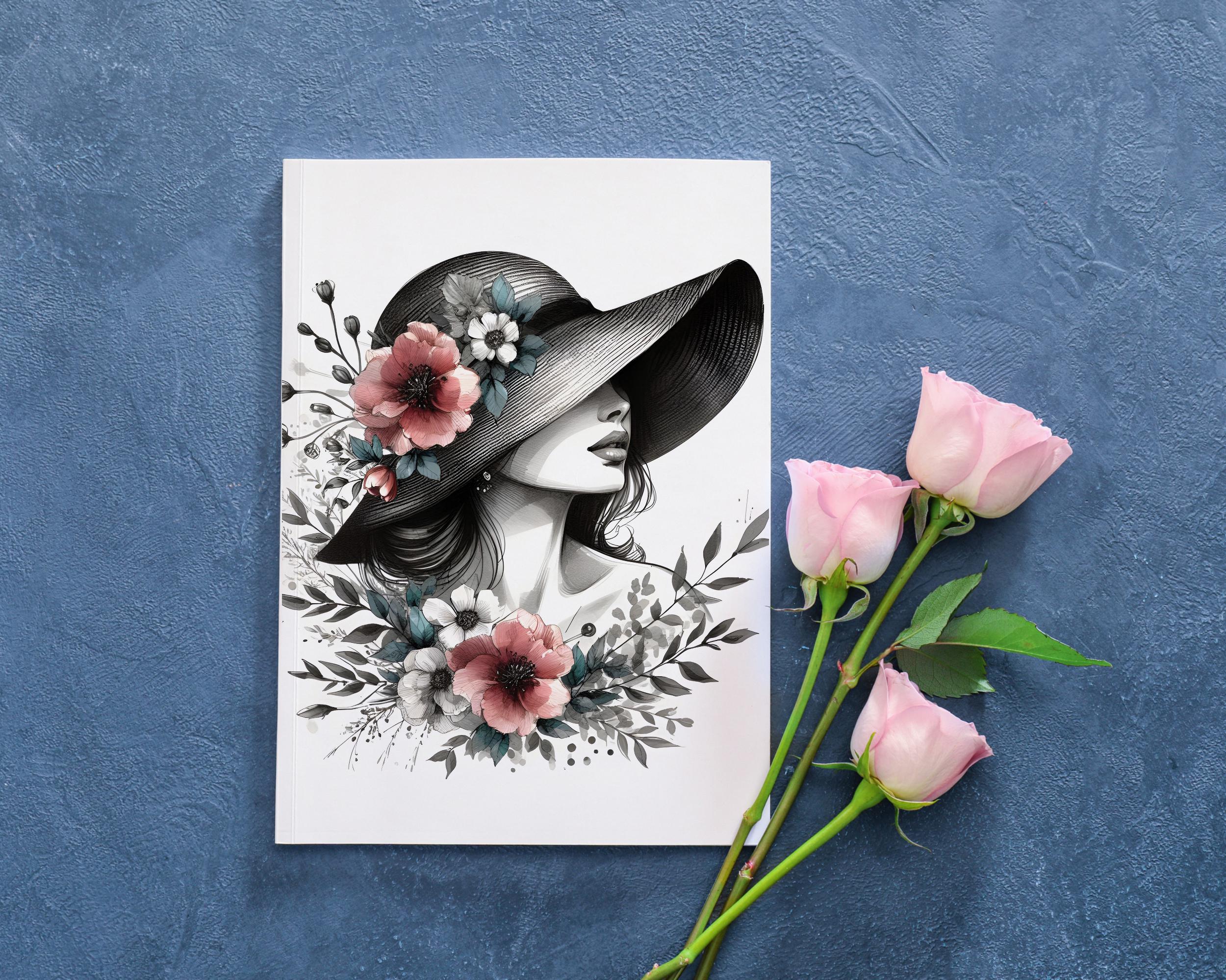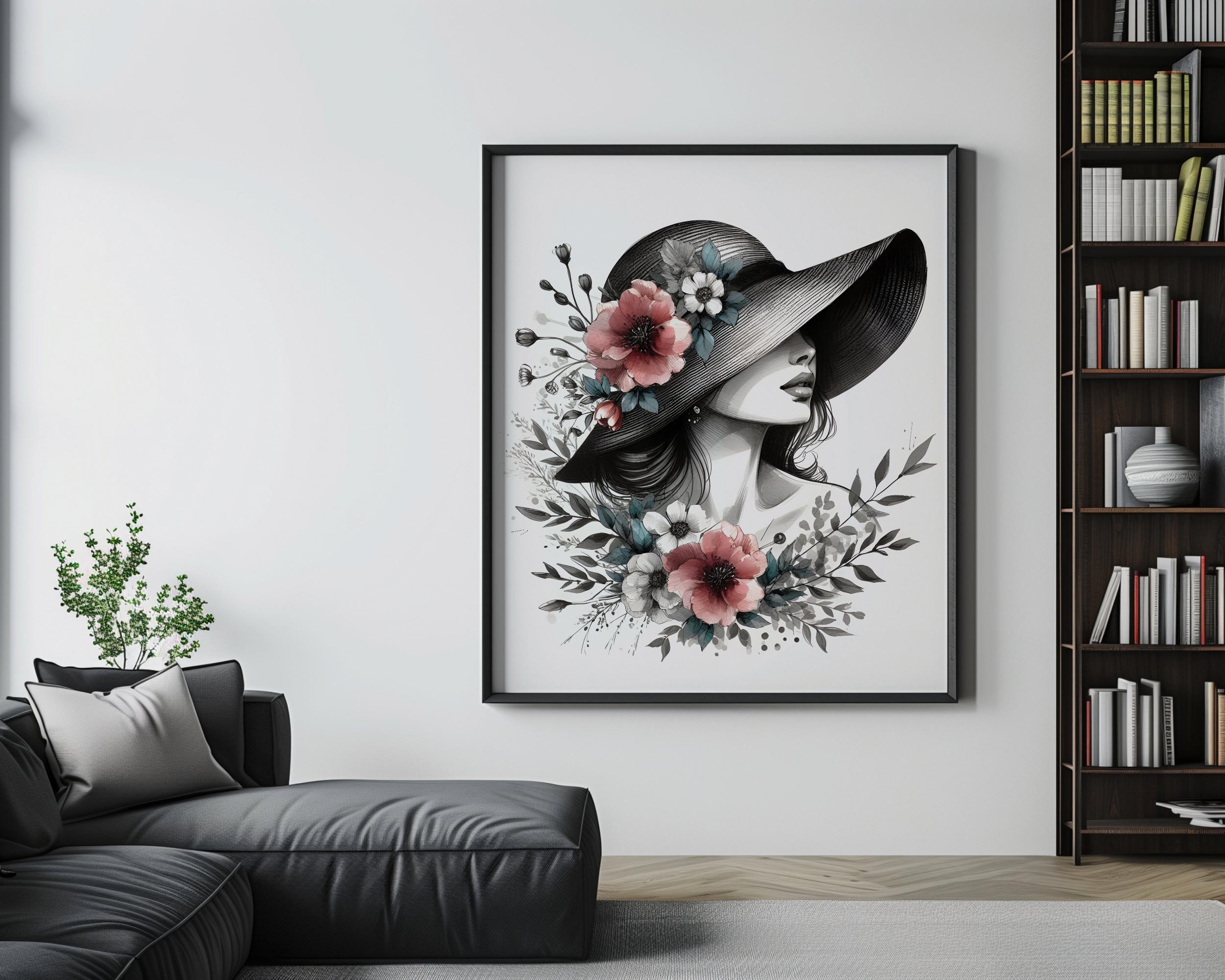Elegant Woman Floral Hat Print | Modern Line Art (Digital Download)