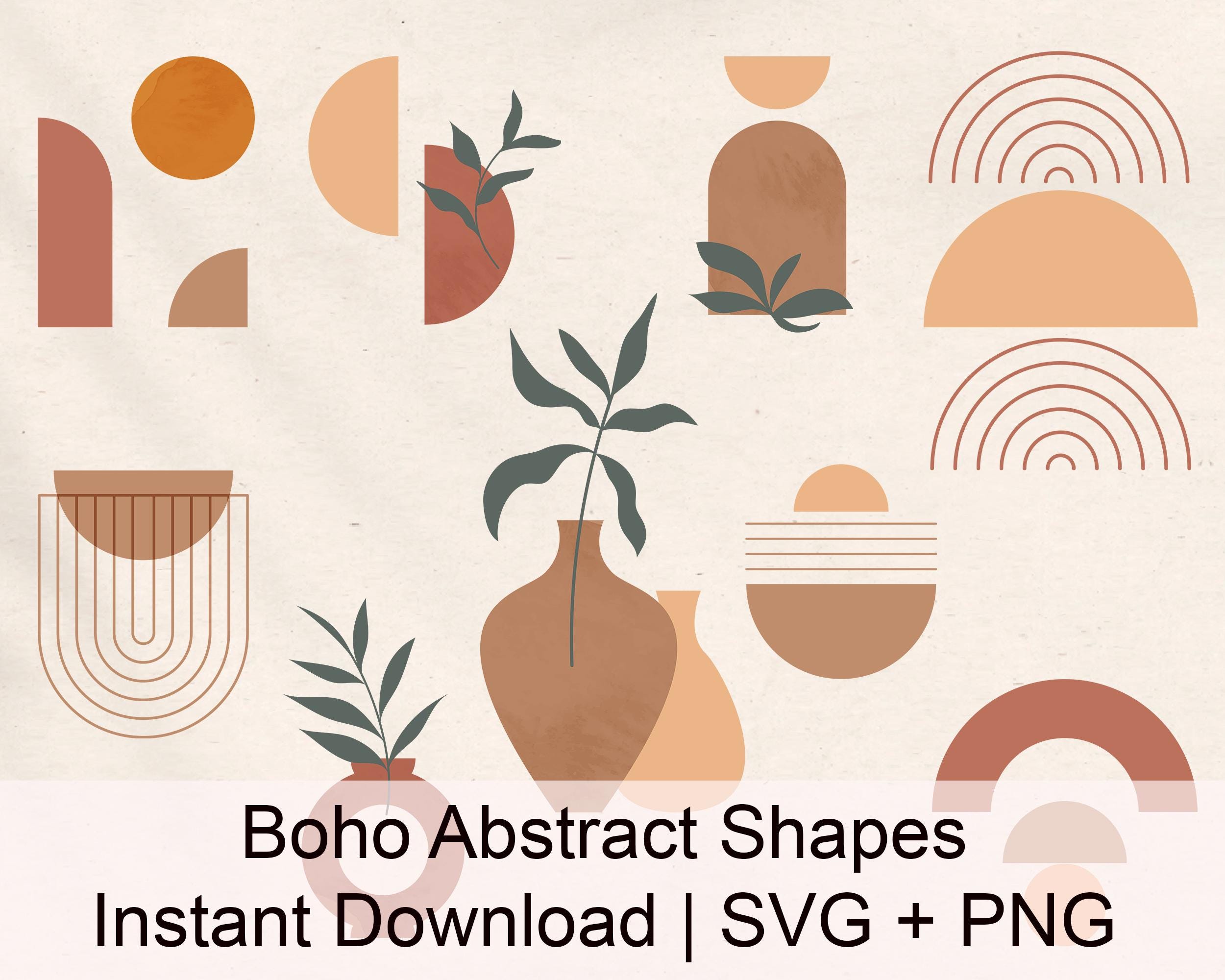 Bring warm, modern elegance to your creative projects with this Boho Abstract Shapes Clipart Set. This set includes nine minimalist designs featuring earthy terracotta tones, abstract vases, line art rainbows, and organic shapes, perfect for branding, posters, wall art, social media templates, and digital crafts. Create your own stylish compositions or add subtle artistic details to your designs with these high-quality clipart elements!