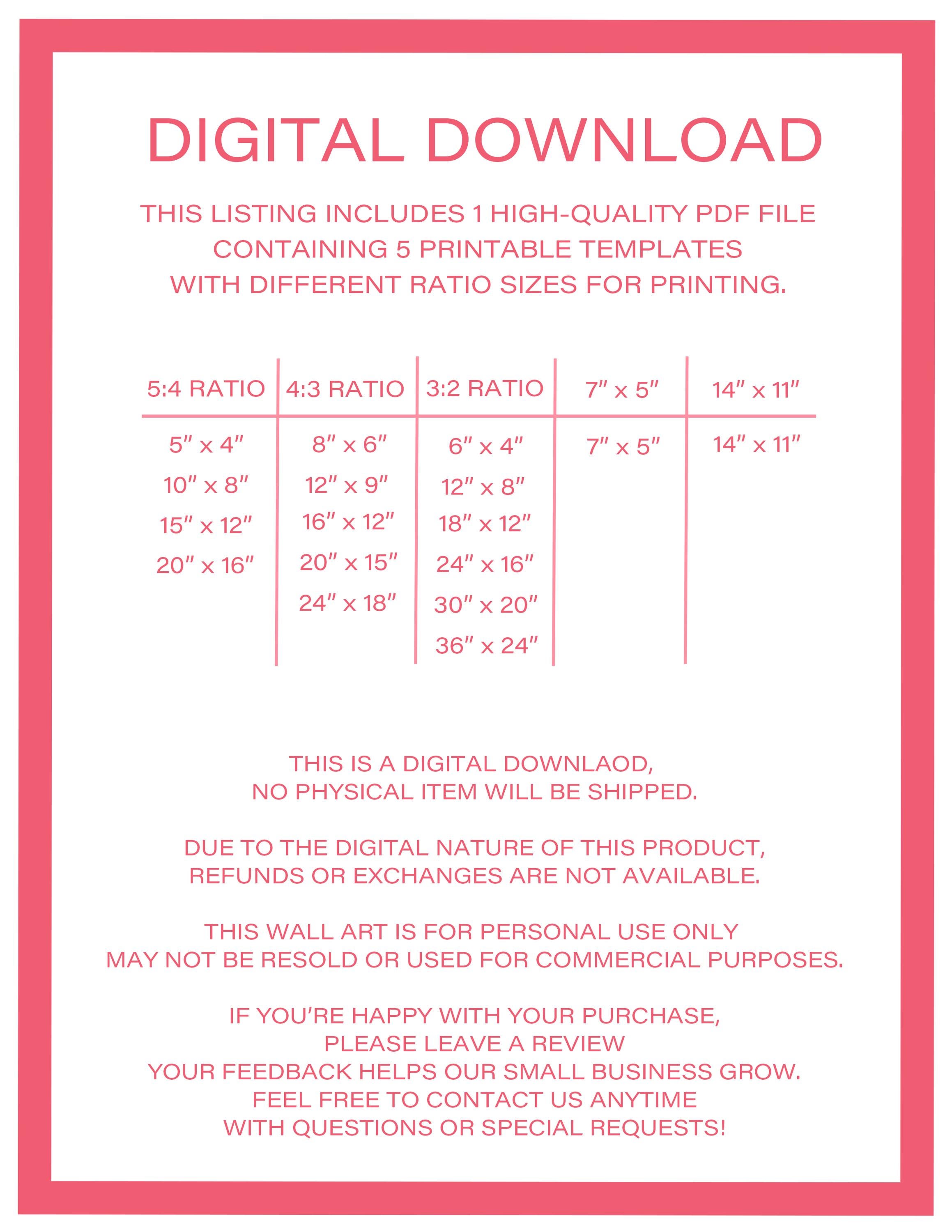1 high-quality PDF file containing 5 printable templates in the following ratios: