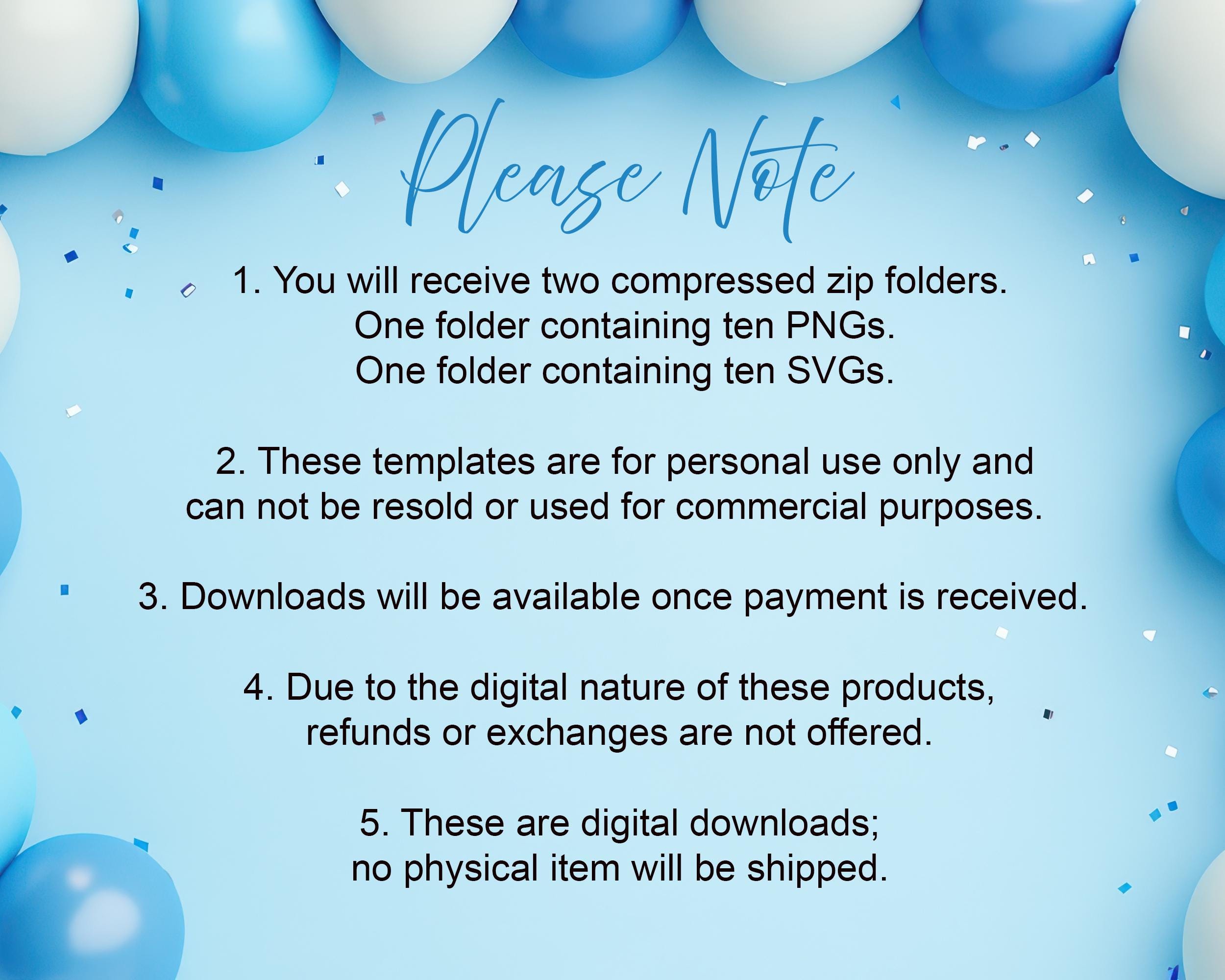 This digital set includes 10 high-quality PNG files and 10 SVG files, featuring festive birthday elements such as cakes, balloons, gifts, candies, party hats, confetti, and more. Ideal for use with Cricut, Silhouette, Canva, Photoshop, and other design software.