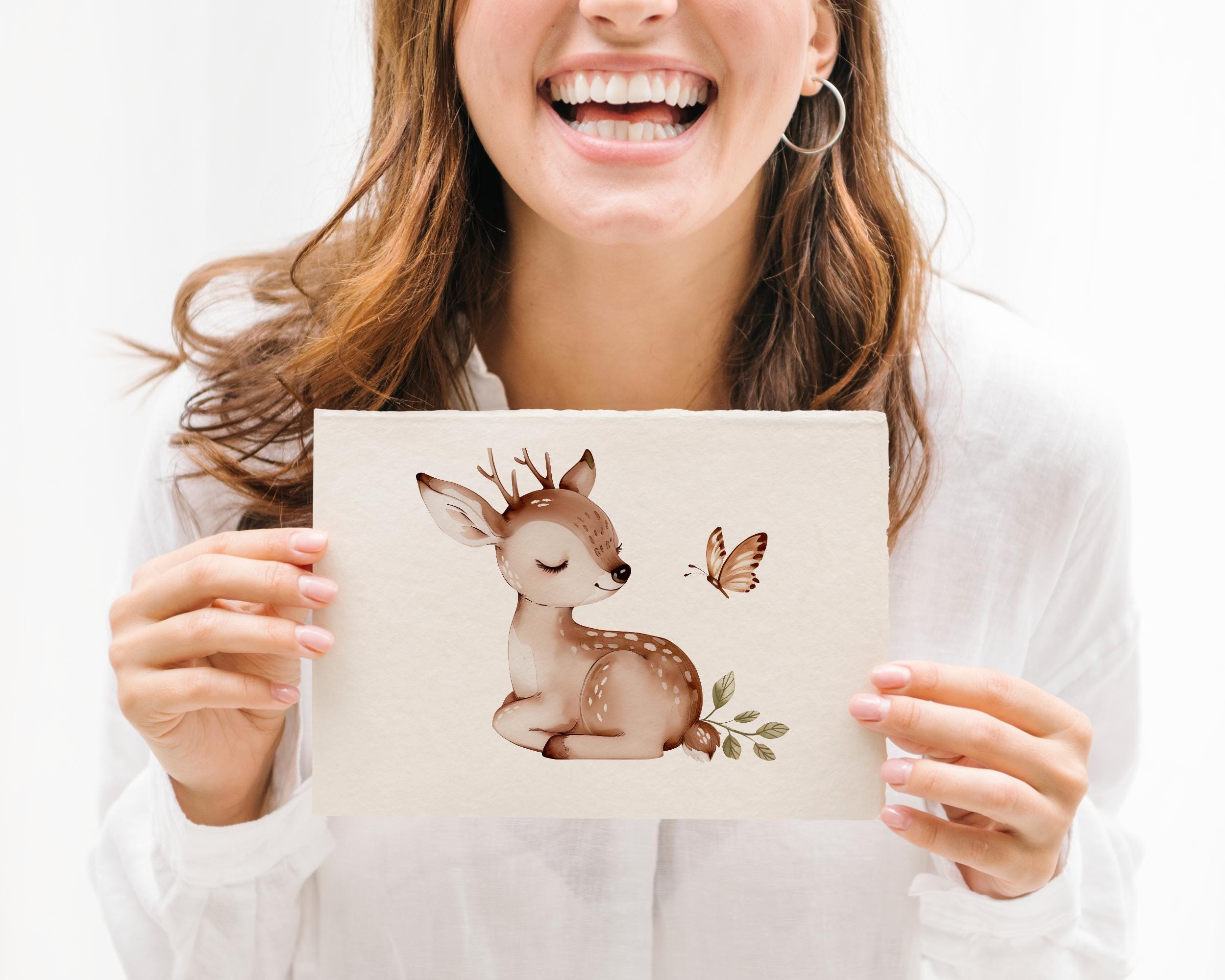 Create soft, heartwarming designs with this Woodland Animals Clipart Set, featuring adorable hand-drawn forest animals in a gentle watercolour style. Perfect for nursery decor, baby shower designs, kids crafts, and Cricut projects.