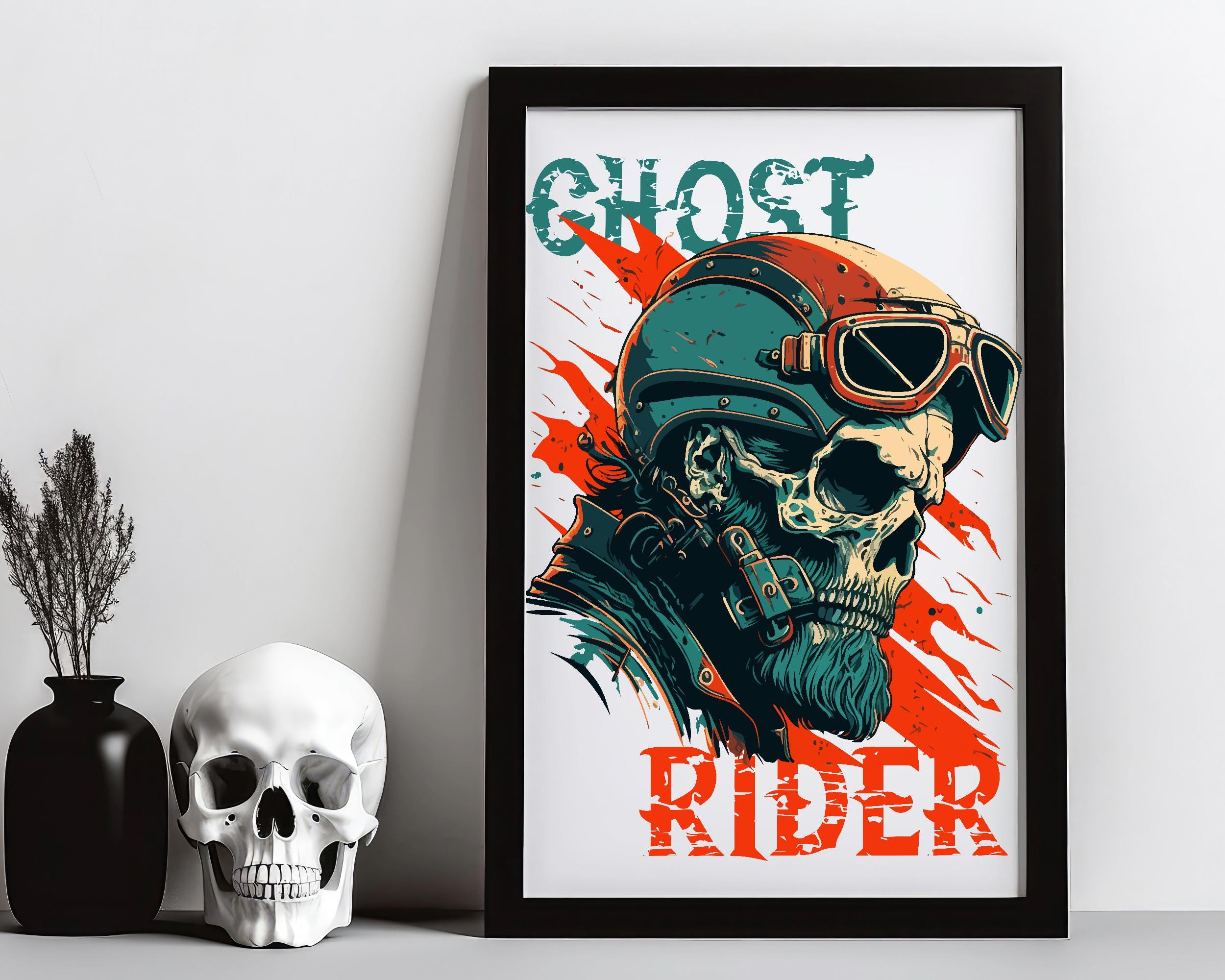Ghost Rider Skull T-Shirt Design | Biker Skull PNG SVG | Motorcycle Shirt Graphic
