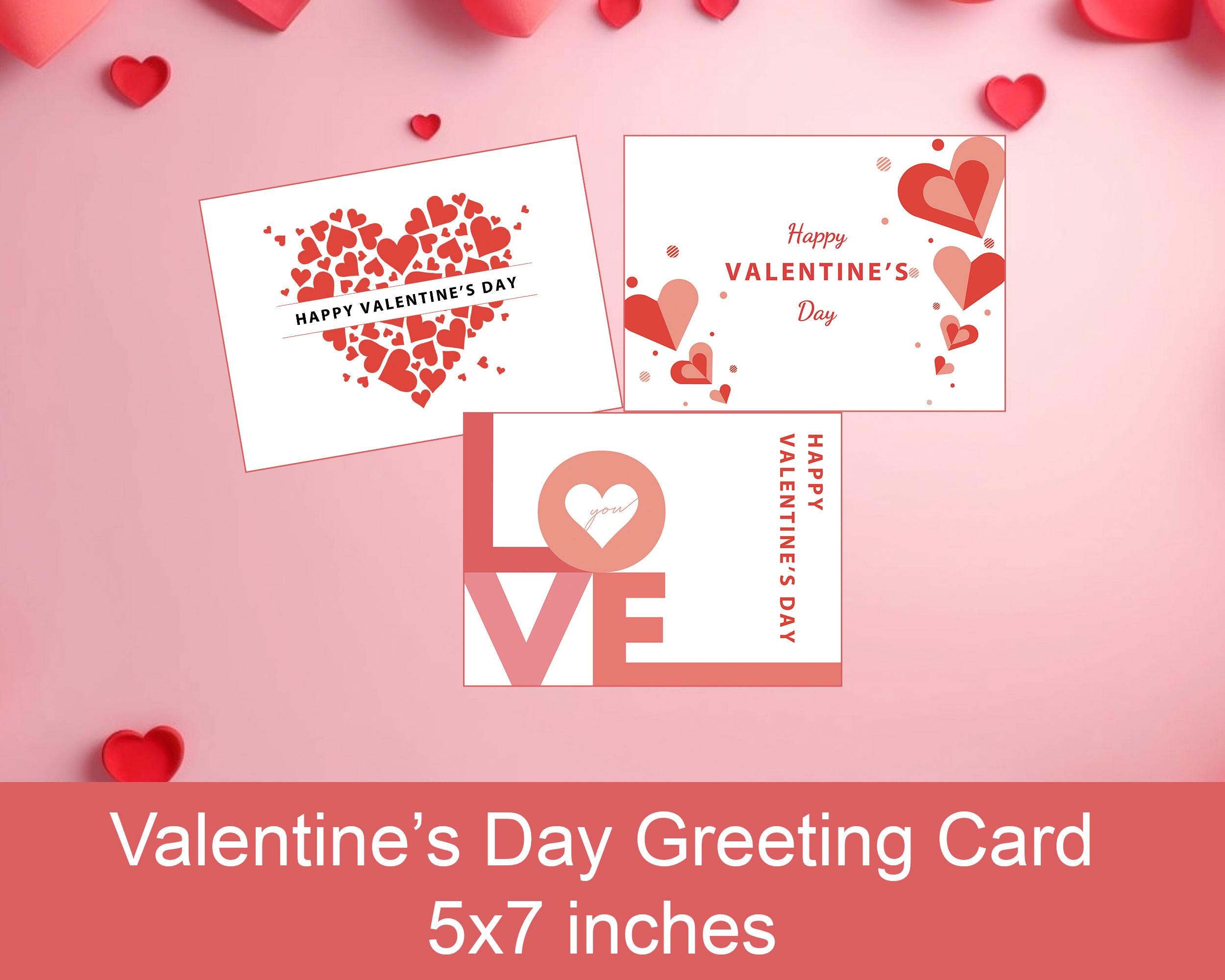 Valentine’s Day Greeting Card Printable Set of 3 | Romantic Heart Card Design
