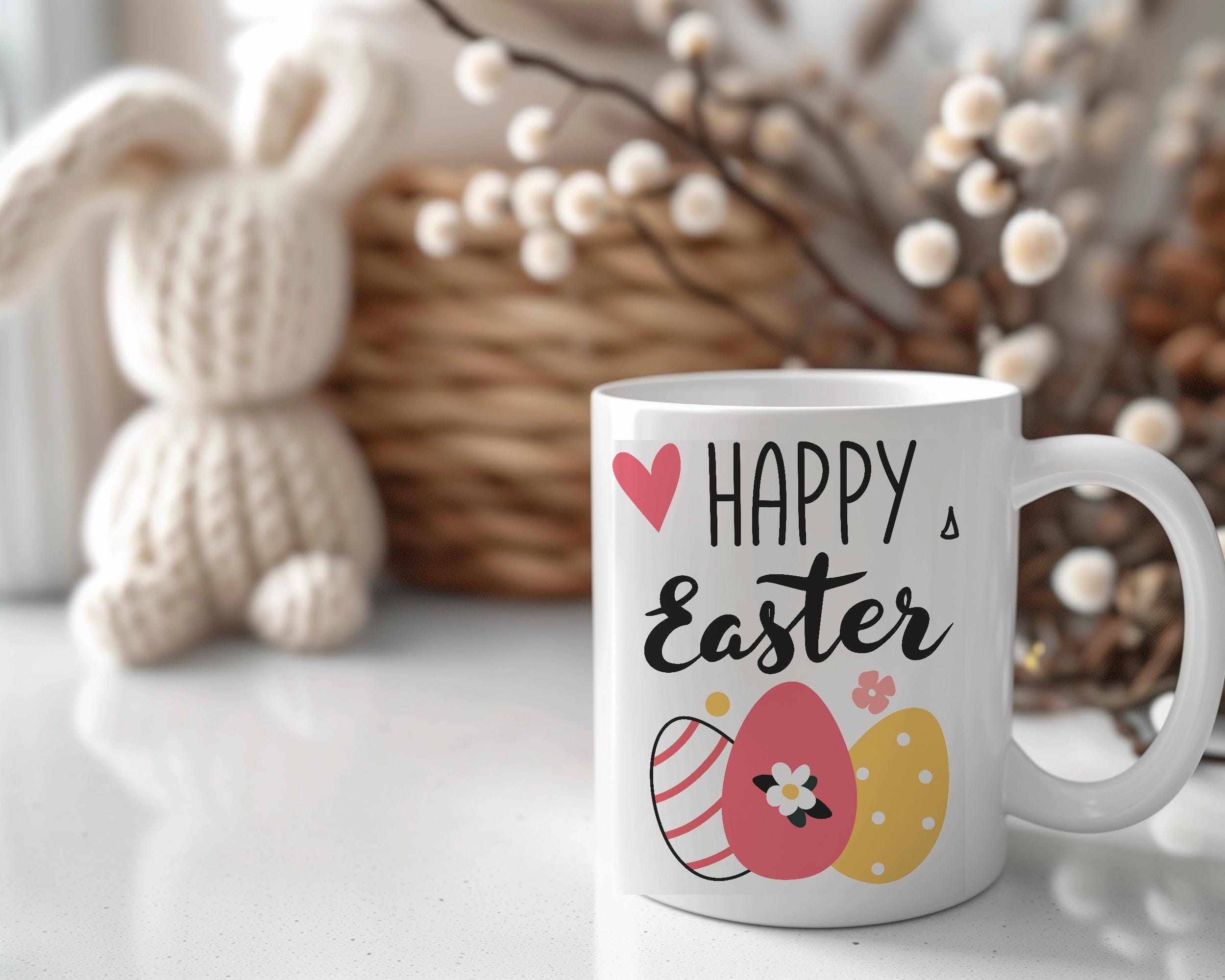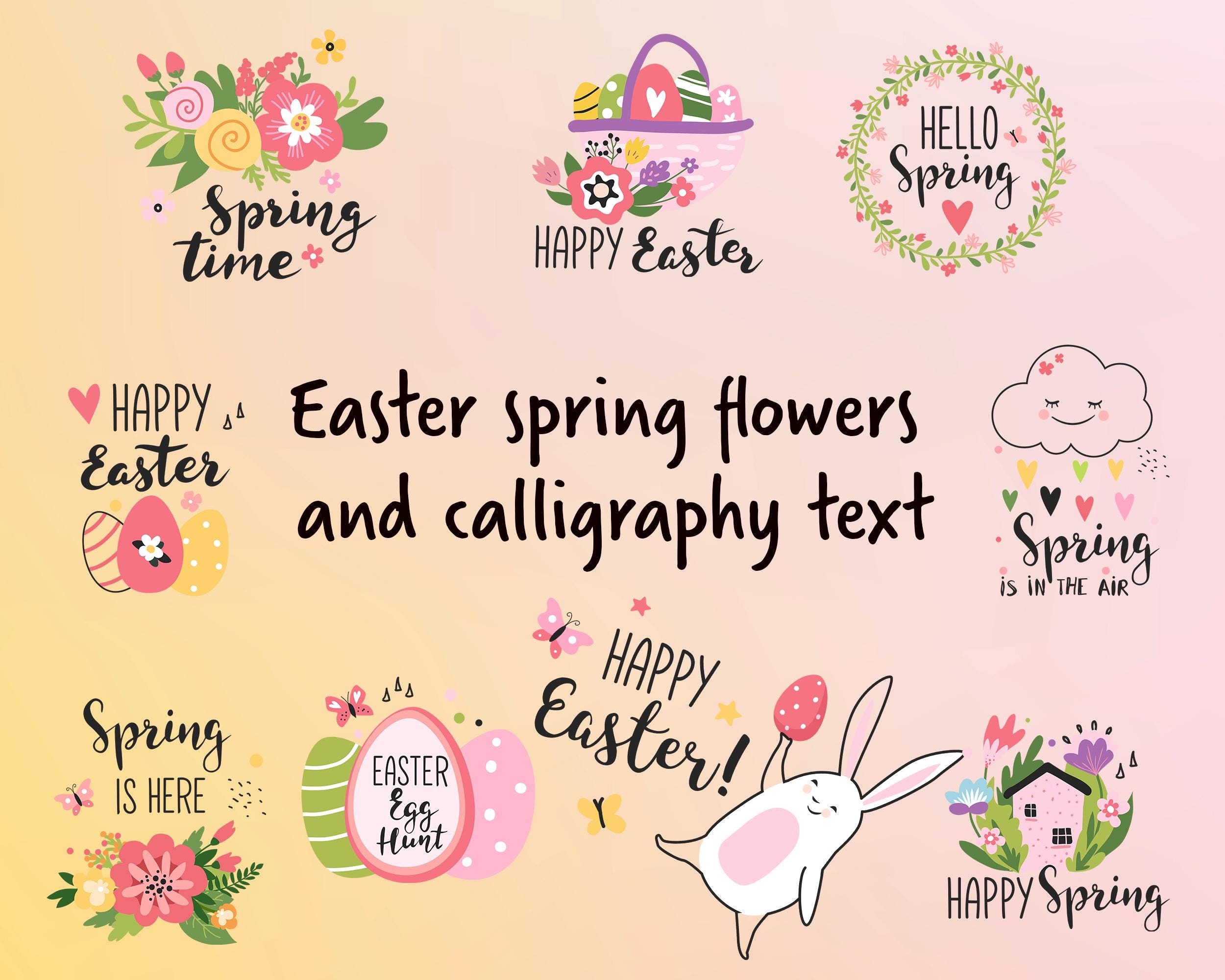 Easter Spring Clipart Set of 9 PNG SVG | Flowers Bunny Eggs Calligraphy Text | Happy Easter Graphics | Spring Design Elements