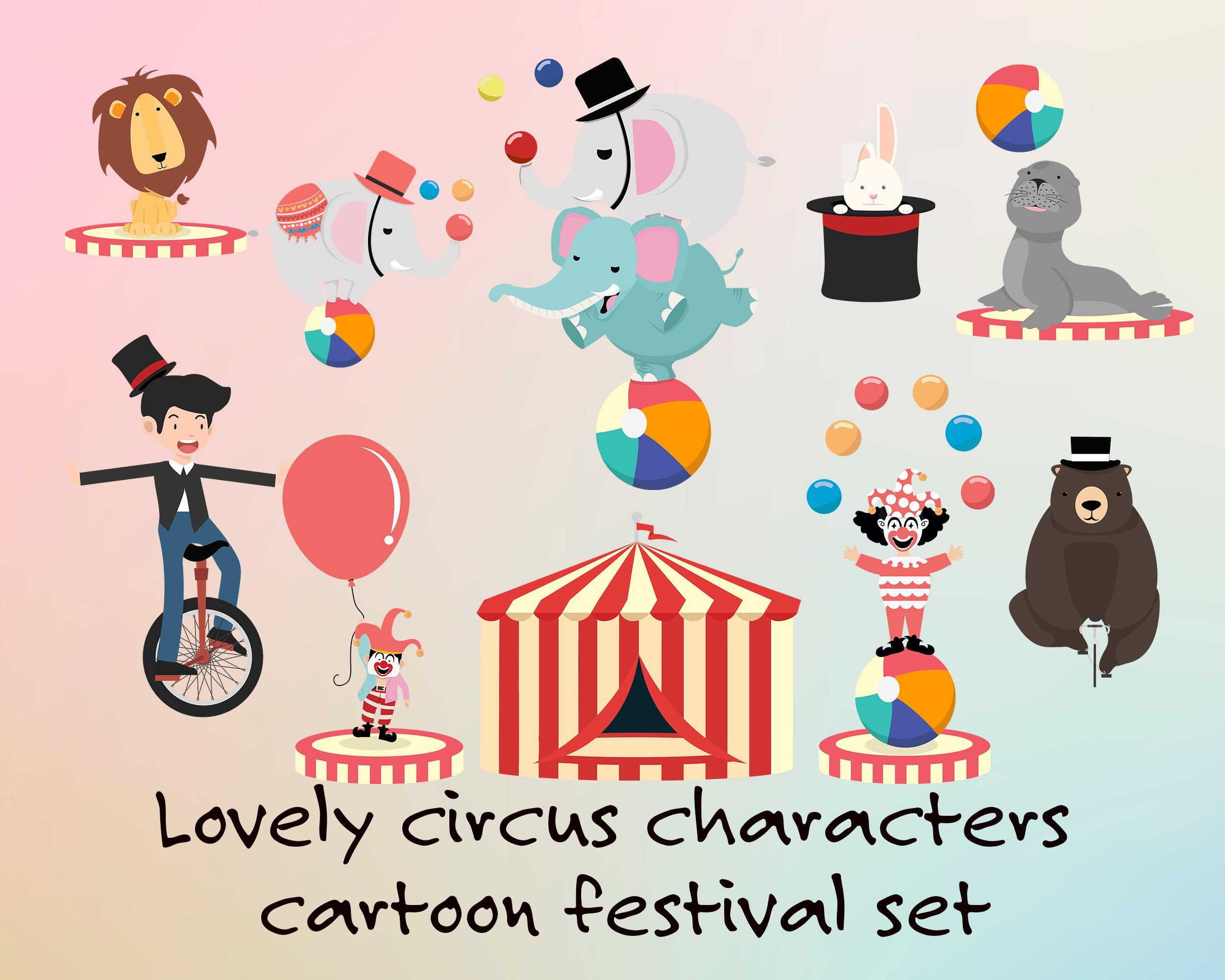 Bring fun and excitement to your designs with this lovely circus clipart set featuring 10 cute cartoon characters. This playful collection includes animals, performers, and circus elements perfect for kids-themed projects.